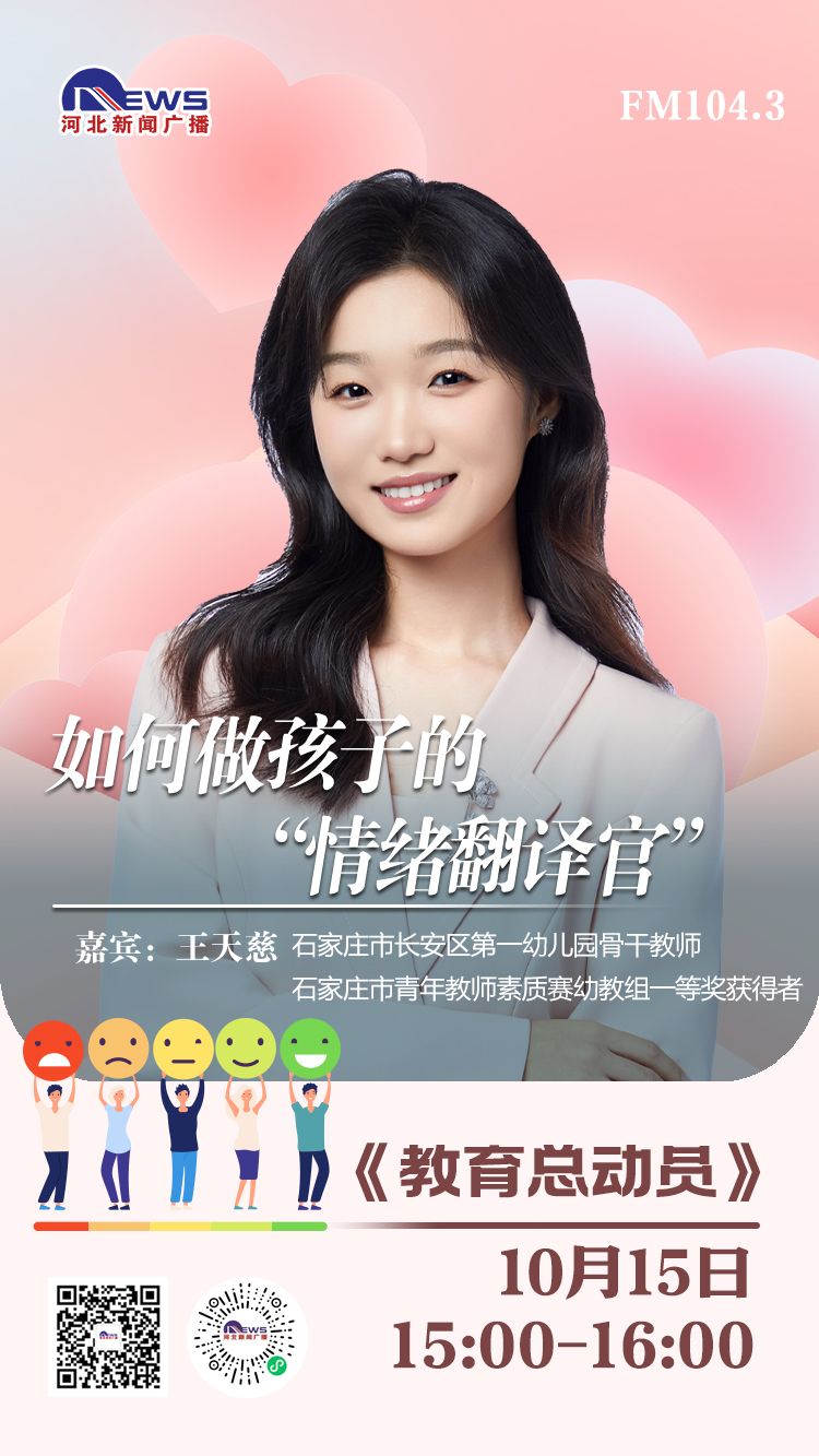 我们常常会发现,孩子会因为一点点小事就崩溃大哭,或者瞬间暴怒,让家长们感到很头疼,甚至忍不住会想:“这孩子怎么这么不听话?为什么就不能控制一下自己呢?”今天邀请石家庄市长安区第一幼儿园骨干教师、石家庄市青年教师素质赛幼教组一等奖获得者王天慈老师分享家长如何做孩子的“情绪翻译官”?