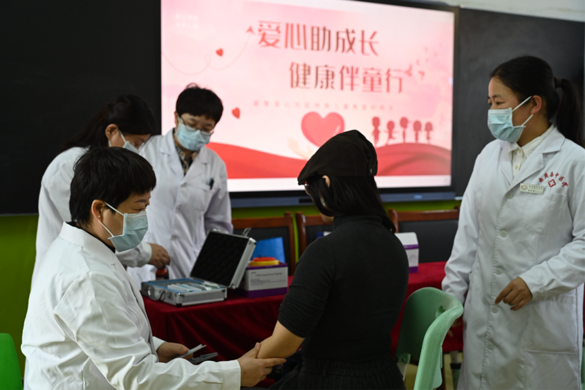 10月16日,邯郸市首个以关注孤独症儿童健康的“金燕公益助康站”的志愿者们,来到曲周县特教学校,为特殊儿童送来了150个爱心书包,并为教师和孩子们进行健康义诊。