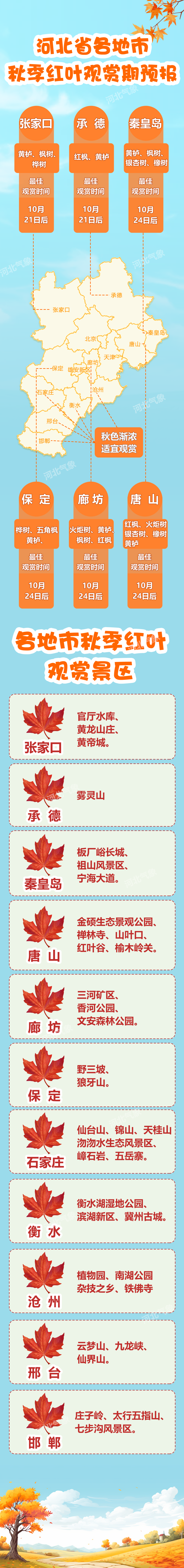 河北省各地市秋季红叶观赏期预报