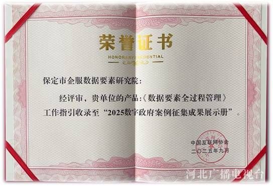 冀时客户端报道 在2025年中国国际数字经济博览会上,河北金融学院、保定市数据局、竞秀区政府、保定市企服数据要素研究院等11家单位推出的“数据要素全过程管理”工作指引(简称“保定模式”)荣获数据产品创新大奖并引发广泛关注。