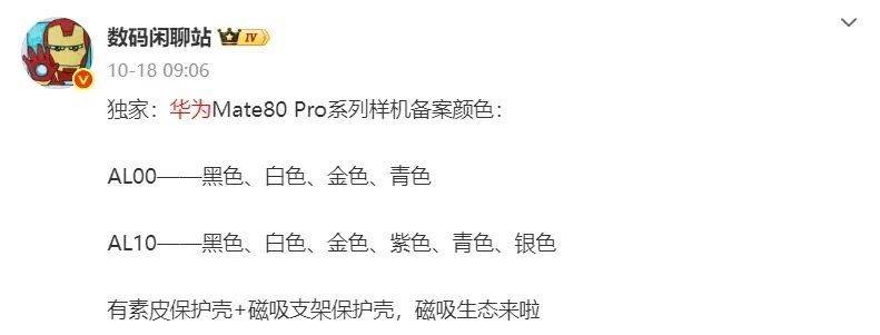 最新爆料显示,华为 Mate80 系列发布会暂定 11 月前后,目前全系机型已完成备案,不少核心配置与设计细节也逐渐浮出水面。