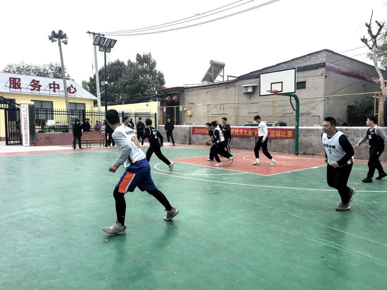 10月18日,邢台隆尧县隆尧镇韩解村委会广场上球员们带球、扣篮、拼抢,伴随着周边观众的呐喊声、加油声,好不热闹。2025年隆尧县第二届全民健身大会“村BA”篮球比赛正在这里举行。