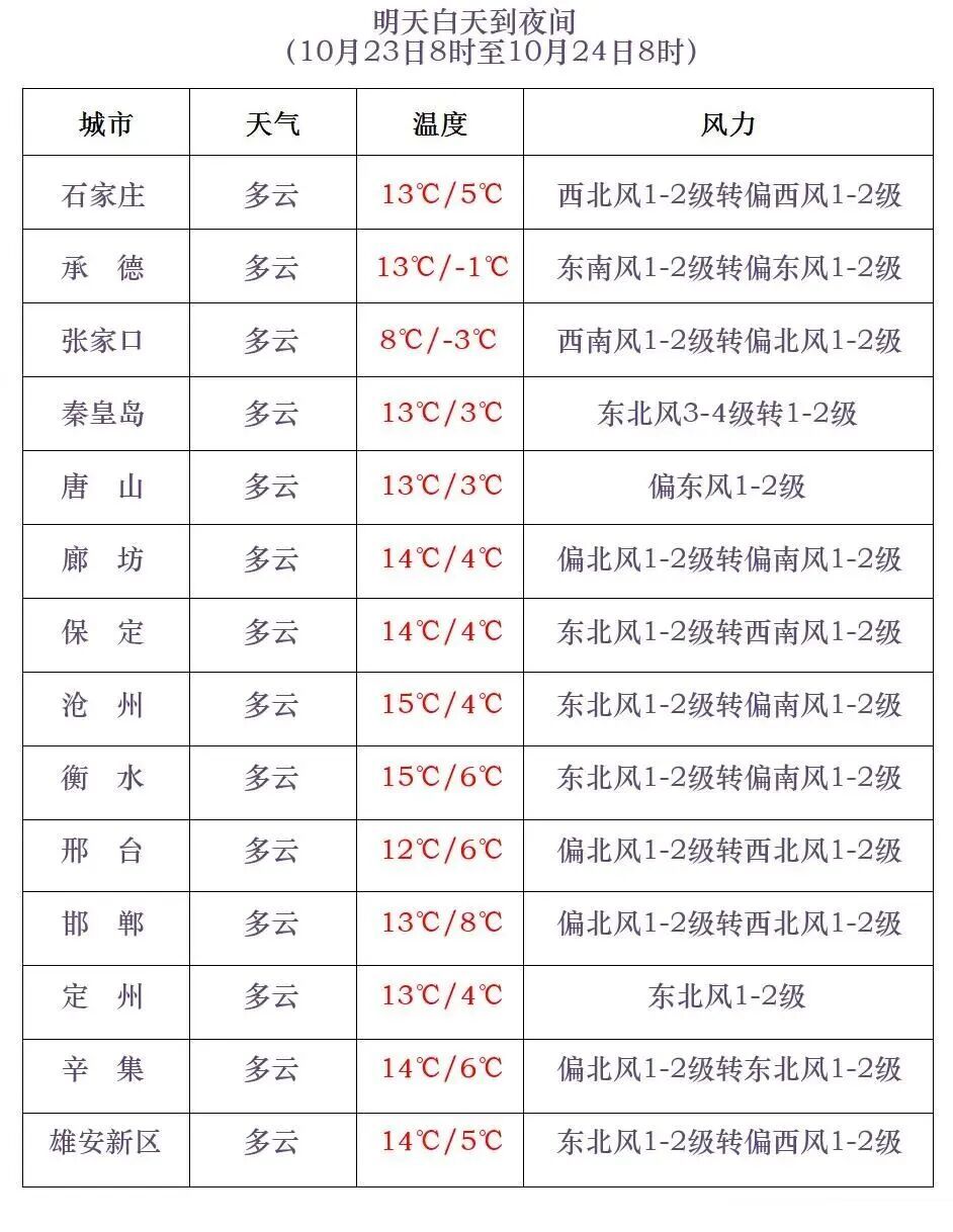 河北省气象台2025年10月22日11时发布天气预报: