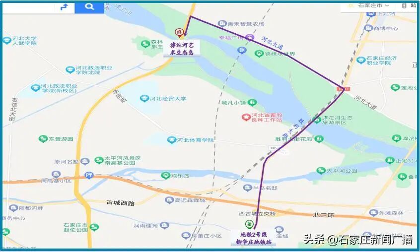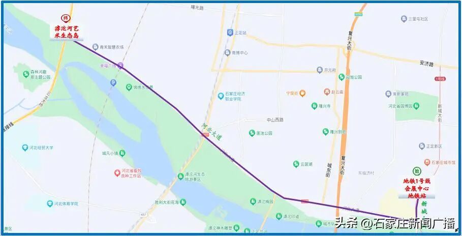 1.起止点:会展中心至滹沱河艺术生态岛。