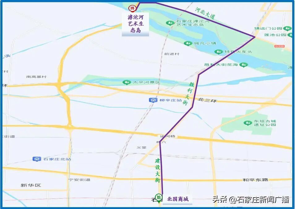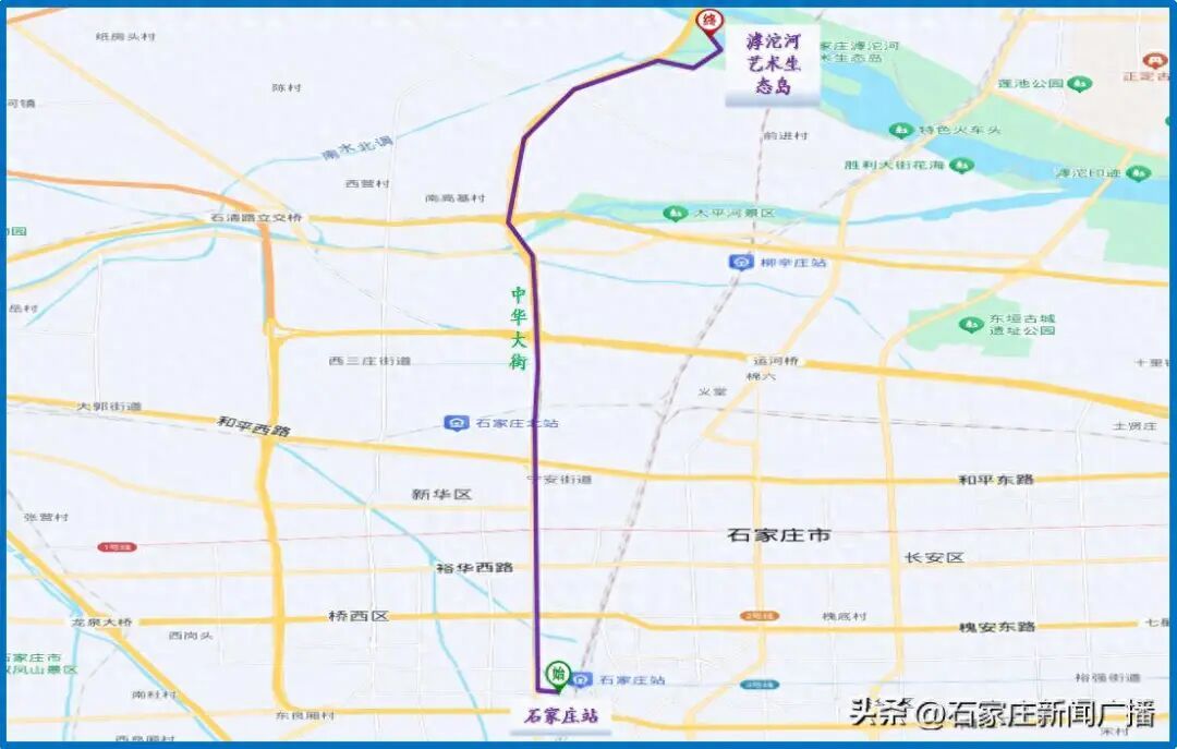 2.运营路径:新石南路、中华大街、河心岛路至滹沱河艺术生态岛。