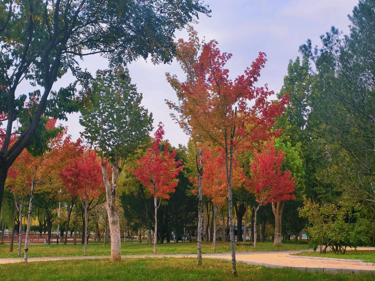 记者从石家庄市植物园获悉,园内多种秋叶树植物进入观赏期,拉开了一场秋日画卷的序幕。