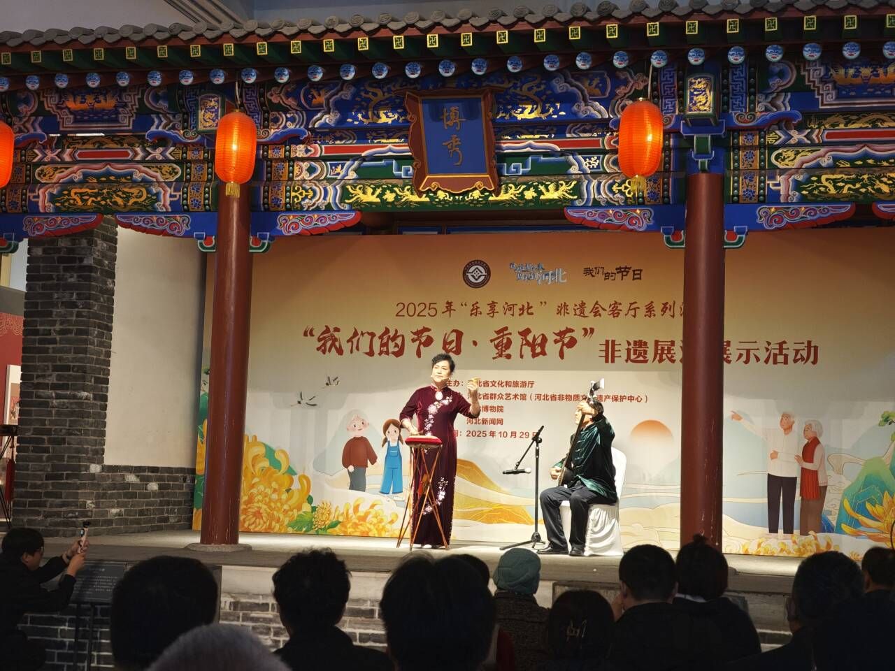 为弘扬重阳节敬老爱老的传统美德,丰富群众节日精神文化生活,提升“这么近,那么美,周末到河北”品牌影响力,10月29日,2025年“乐享河北”非遗会客厅系列活动——“我们的节日·重阳节”非遗展演展示活动在河北博物院举办。