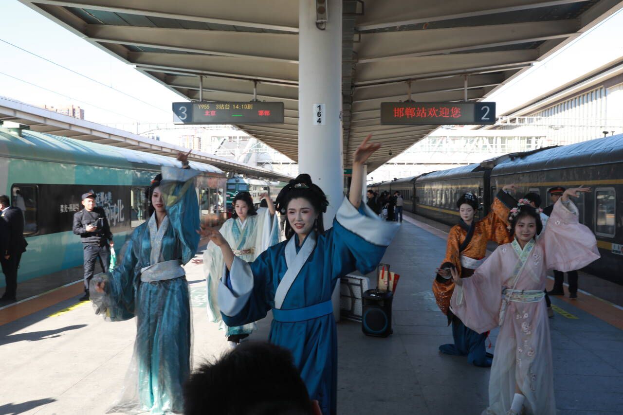 首趟开往邯郸的“星光·燕赵号”列车专业服务团队由北京客运段指导列车长李美带领13名“星光管家”组成,为旅客提供登车引导、餐饮配送、行程解说等一站式服务。首趟运营数据显示,Y955次从北京始发旅客187人,单程累计运送206人;返程Y956次从邯郸始发旅客49人,单程运送74人。服务团队在做好旅客服务的同时,重点强化车厢验票、安全乘降宣传及行李规范码放等安全保障工作。李美表示:“‘星光·燕赵号’不仅是一趟旅游列车,更是移动的文旅展示平台。我们既要让旅客享受到舒适便捷的出行体验,更要通过特色专业服务让大家感受到邯郸的文化魅力,让这趟列车成为连接北京与邯郸的‘文旅纽带’。”
