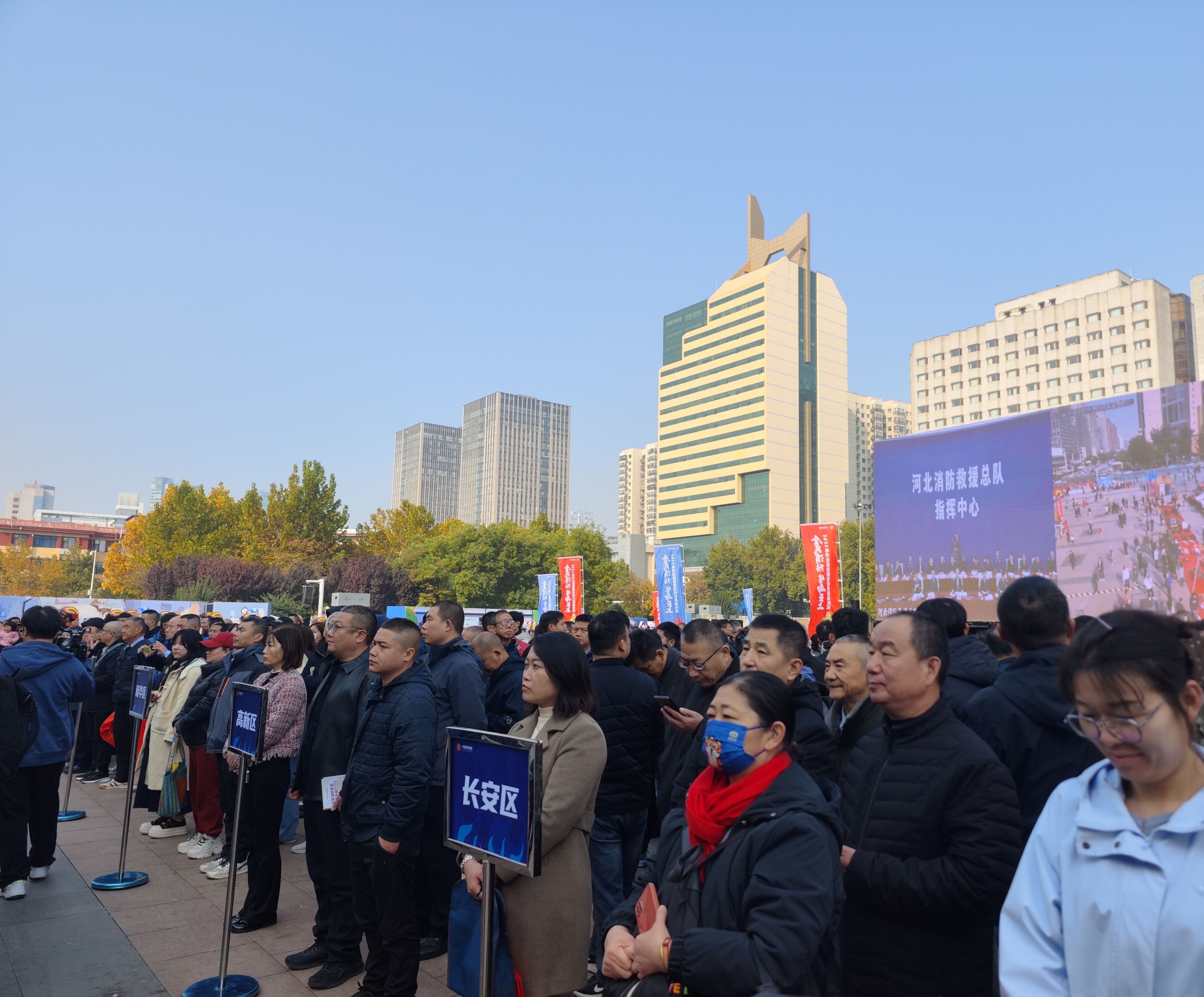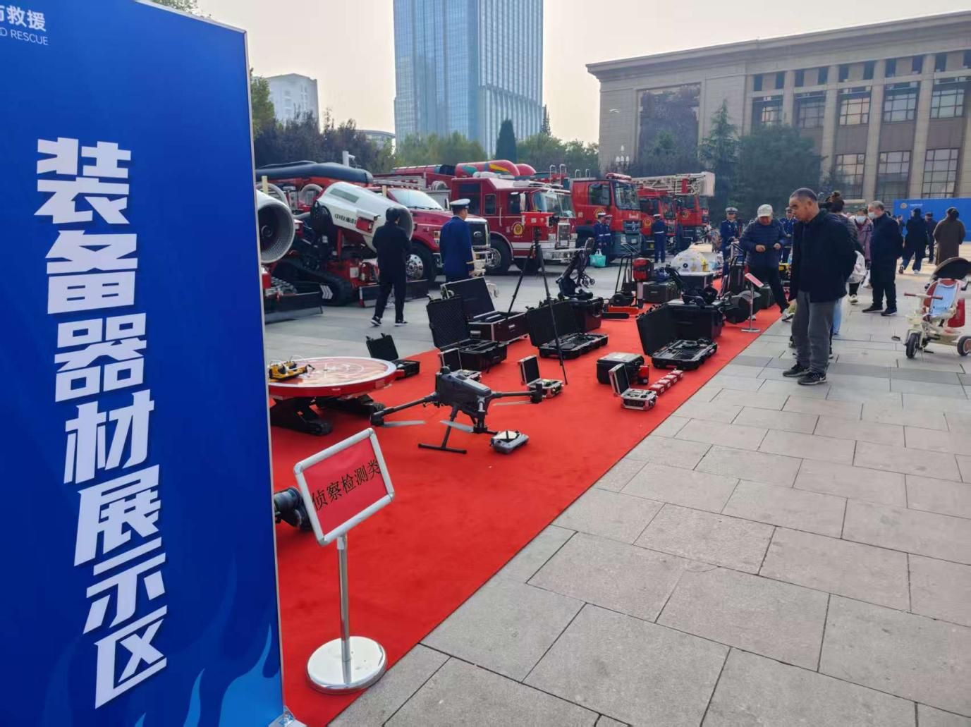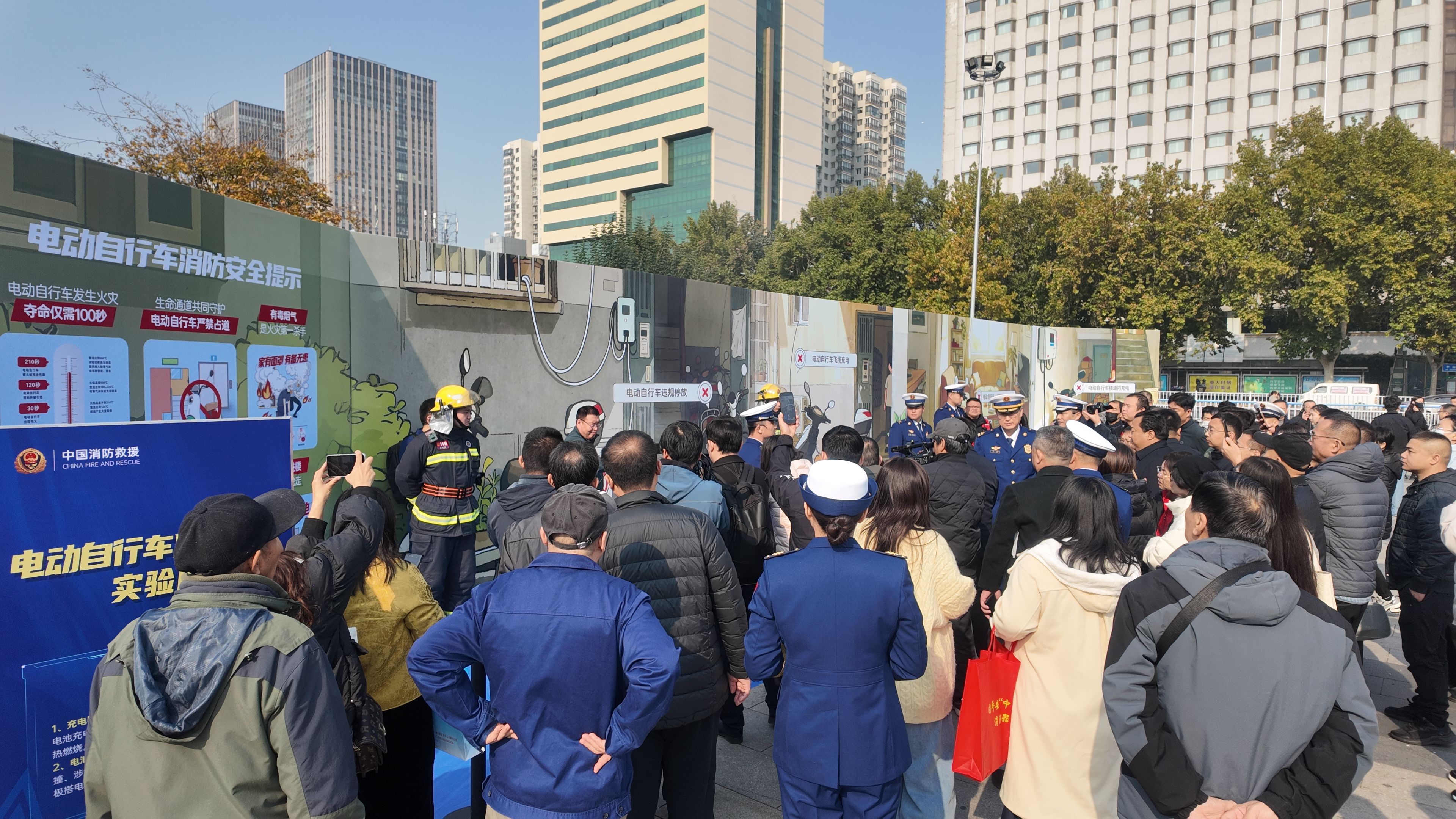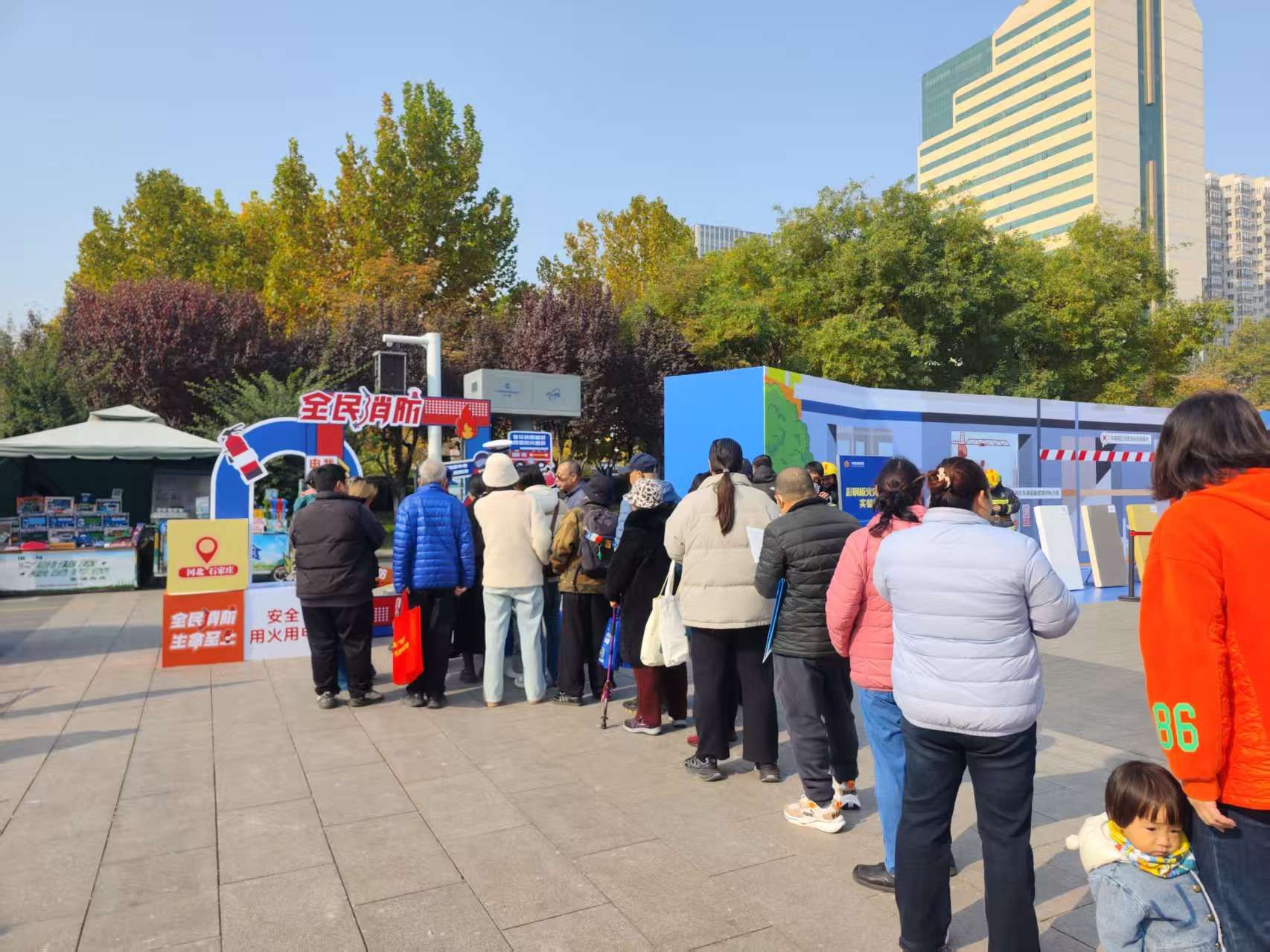 在石家庄市省会文化广场线下活动现场,主办方围绕“实用、直观、有趣”原则,设置了火场烟气模拟与安全用火用电实验区、彩钢板及电气焊火灾成因实验区、电动自行车火灾成因实验区、游戏互动区、消防车辆装备展示区、搜救犬科目展示区、逃生帐篷体验区及消防儿童绘画区等多个功能区域。来自社会各界工作者、消防安全重点单位代表及滴滴出行、美团、饿了么等平台消防志愿者在内的500 余人现场参与活动。