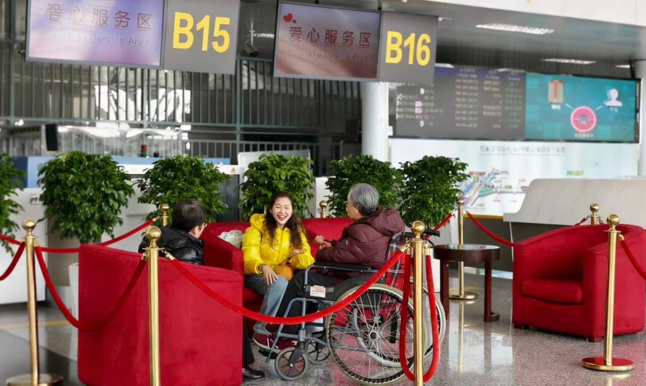 细节处见温度,持续深化“冀忆游新”品牌。围绕冬季出行群体差异化需求,石家庄机场推出一系列精准化、个性化服务。“爱心贴”“晚到贴”标识让首次乘机旅客、赶时间的晚到旅客全程无忧;“长者尊享”服务为80岁以上高龄老人提供免费嘉宾休息区、电瓶车直达登机口等专属礼遇。针对轮椅使用者、无人陪伴儿童等特殊群体,旅客可通过“河北机场旅客服务”小程序进行预约。此外,石家庄机场还在出港大厅问询服务台旁打造“爱心服务区”,并联动机场“文明实践爱心驿站”,为老弱病残孕等特殊群体提供一站式服务咨询、需求登记、轮椅借用等暖心服务,让寒冬旅途始终萦绕着暖心关怀。