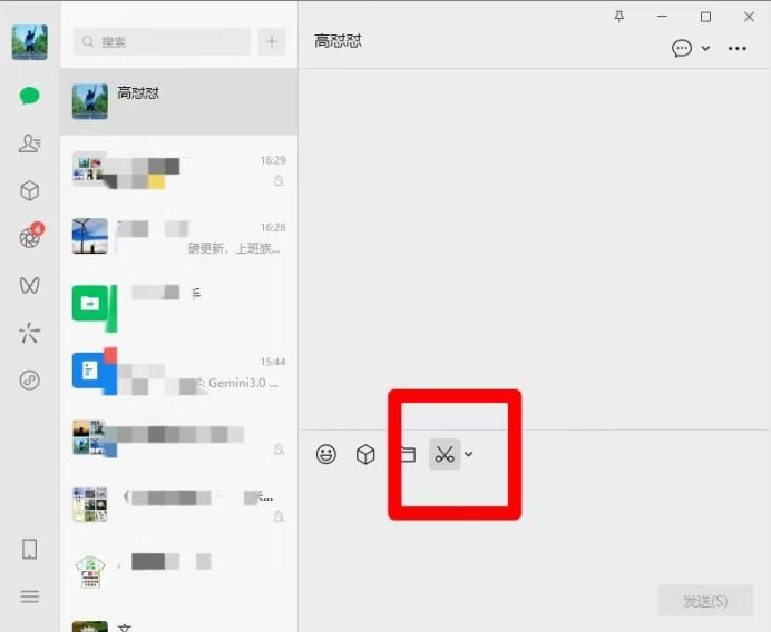 打开想要截图的网页后,点开任意好友聊天框,点击“剪刀”(即截图工具)。