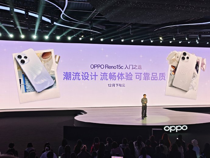 再就是OPPO Reno15c,此前Reno15系列发布会上就预告还有一款Reno15c将在12月亮相。配置方面目前曝光不多,或许将成为价格最低的潜望长焦机型。