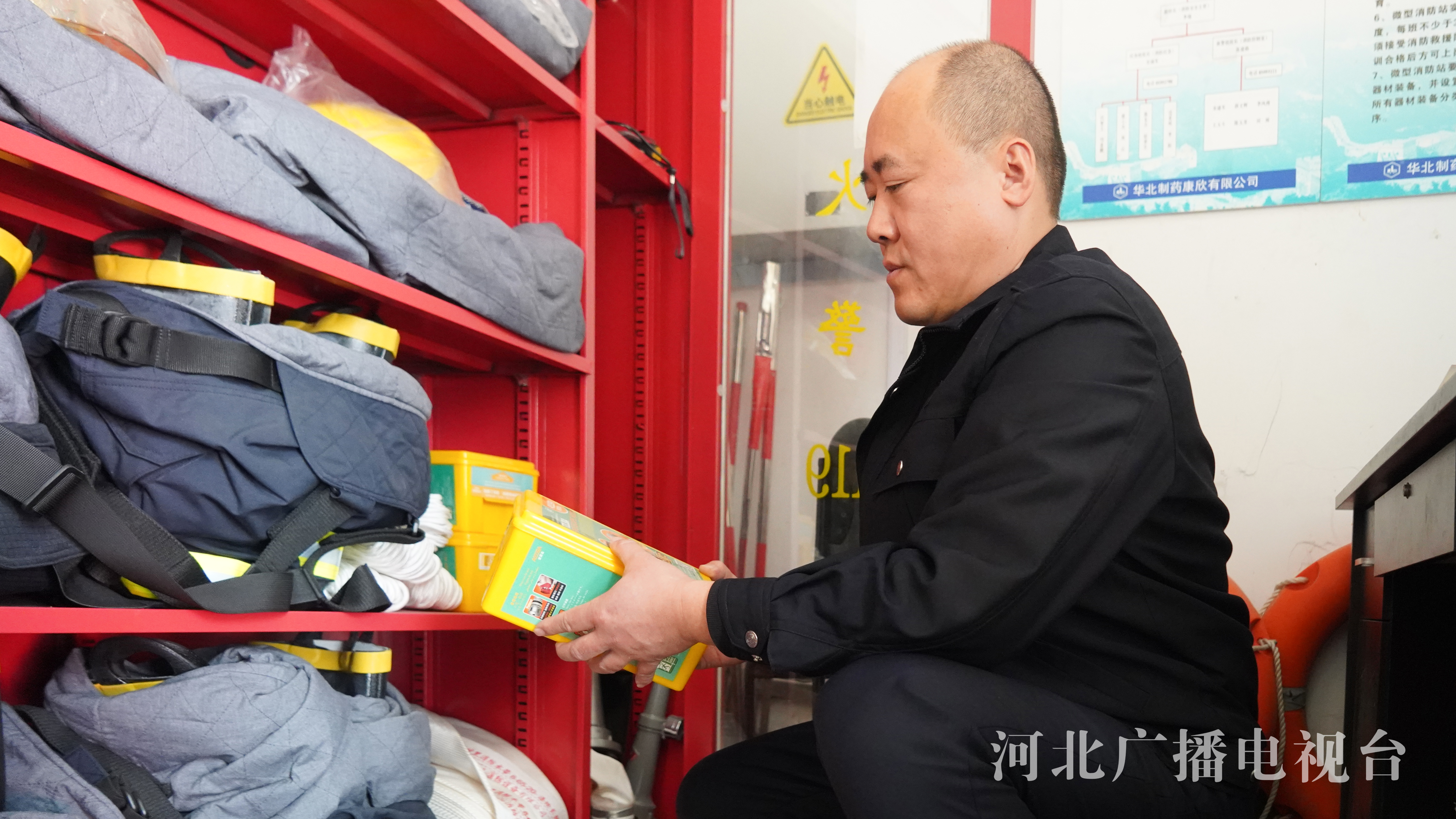 田岳江在做日常的消防设备检查