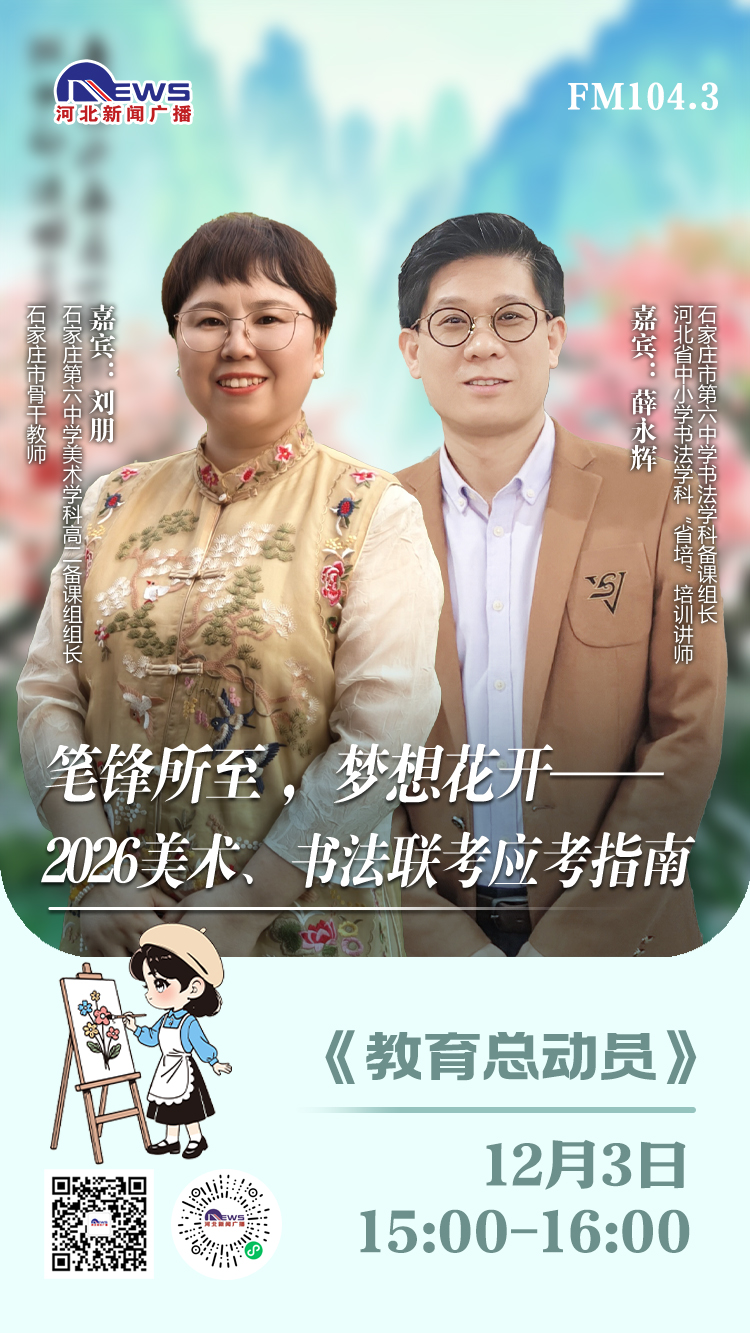 高三美术和书法集训已进入最后的冲刺阶段。今天邀请石家庄第六中学美术学科高二备课组组长、石家庄市骨干教师刘朋,石家庄市第六中学书法学科备课组长、河北省中小学书法学科“省培”培训讲师薛永辉跟大家分享如何应考。