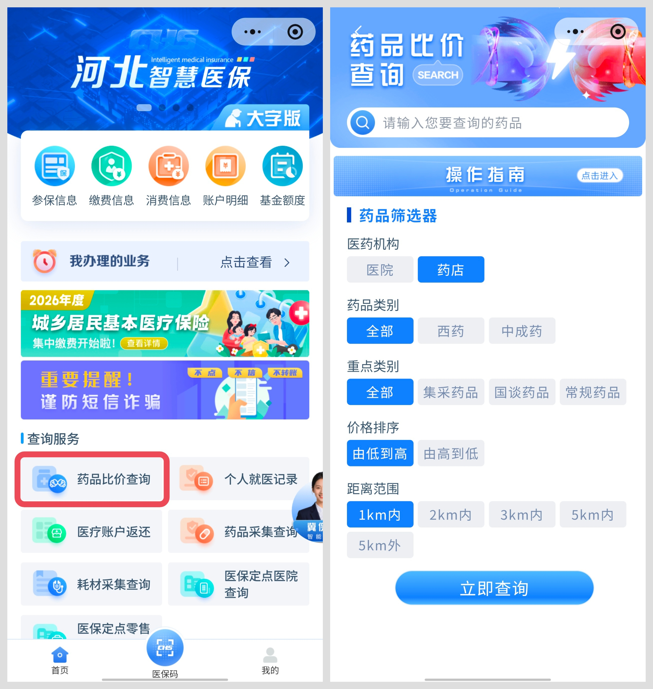 “河北智慧医保”微信小程序中的“药品比价查询”