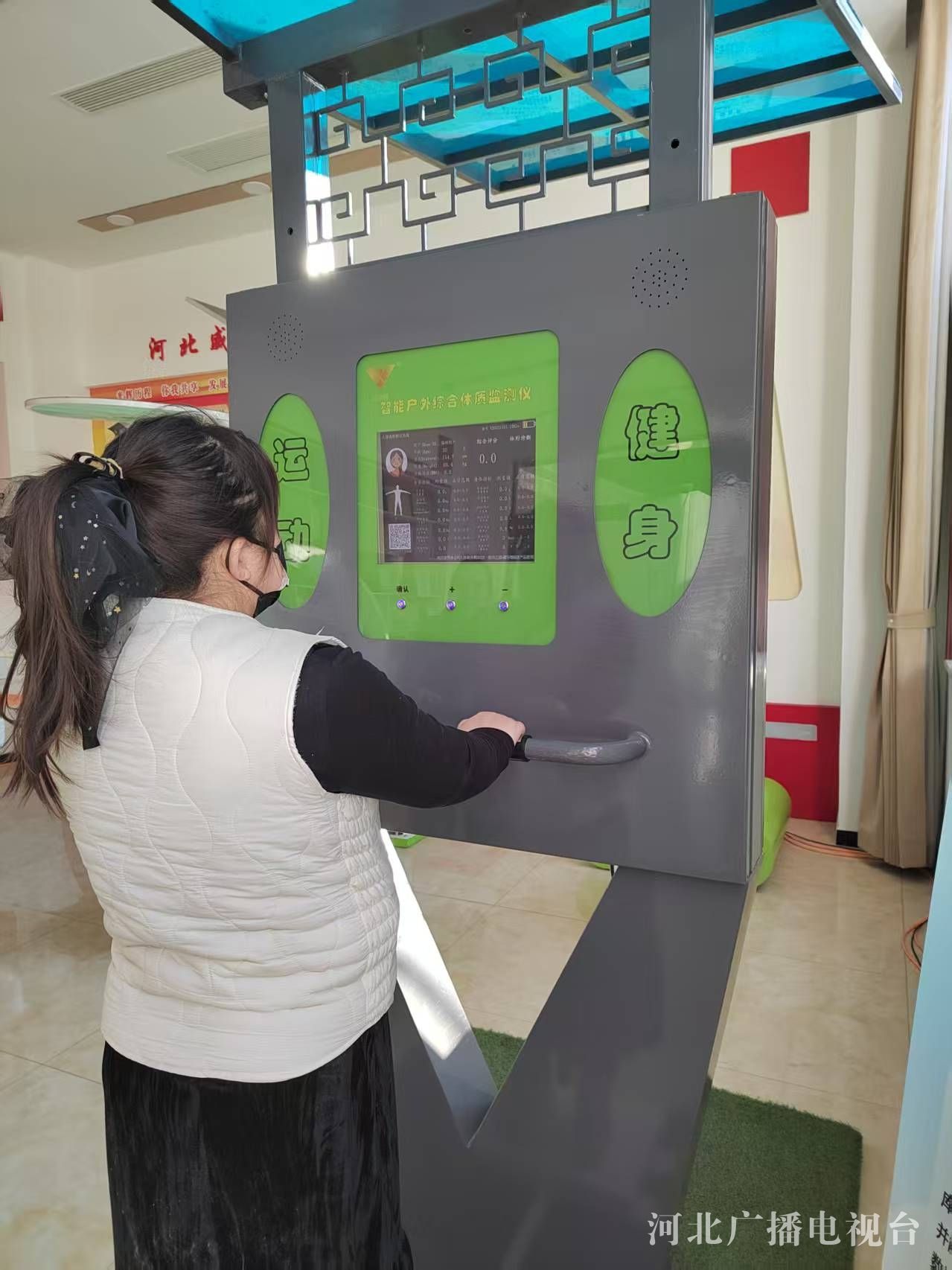 河北威尔特体育用品有限公司办公室主任王丽梅亲自演示智能户外综合体质检测仪的使用方法:将双手握住感应片,拇指按在上感应片上,掌心握下感应片。这样设备就能自动监测人体的去脂体重、体脂肪重量、身体总水分、基础代谢、生理年龄等十几项主要功能,便于随时随地了解自身体质,达到有针对性锻炼的目的。