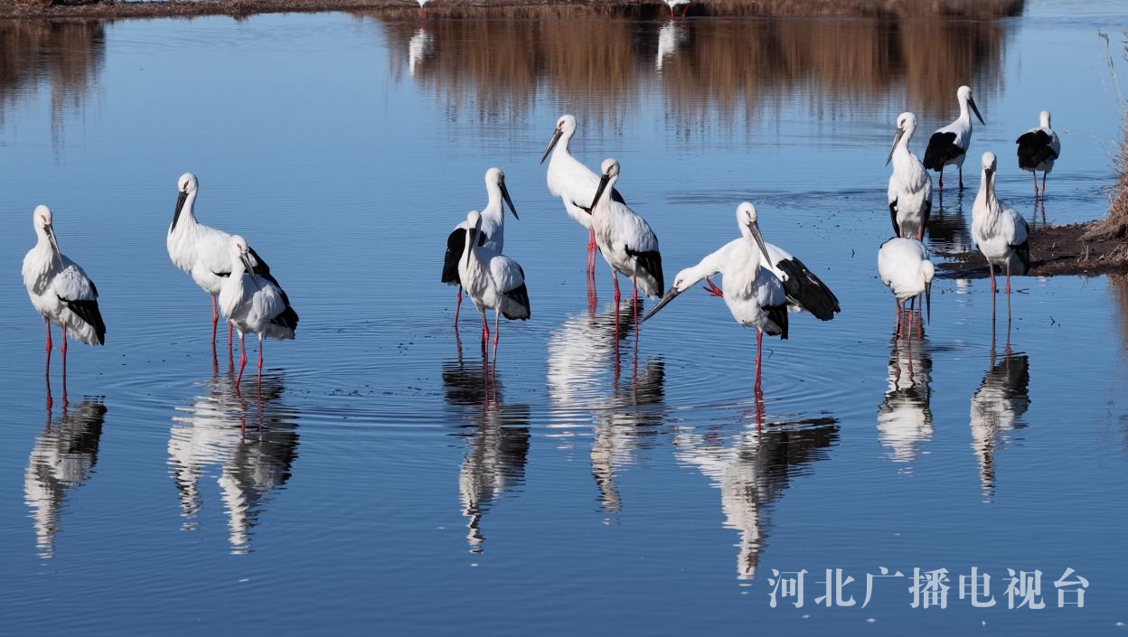 冀时客户端报道 1500多只国家一级保护动物—东方白鹳今冬到访南大港湿地,数量占到全球东方白鹳总量的15%。