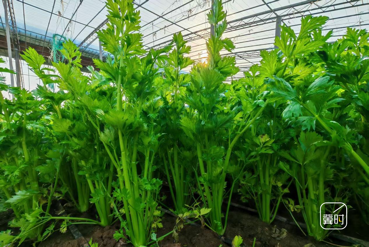 在沧州东光县灯明寺镇的祥明种植专业合作社,可生吃的“皇后”芹菜喜获丰收,工人们正麻利地采收、捆扎、装车。
