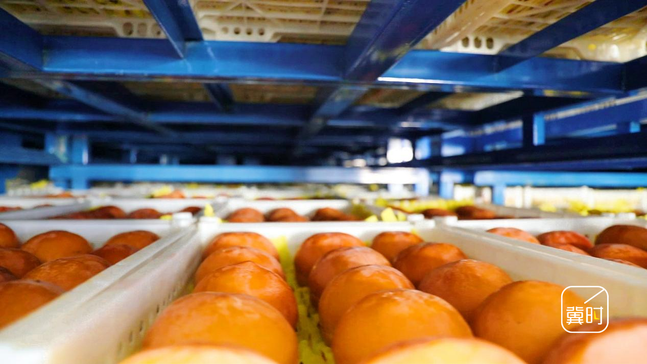 一枚枚橙黄的磨盘柿经过自动化流水线,完成从枝头鲜果到杯装“冰激凌”的蜕变,也让“应季销售”的农产品从“一季收”变“四季丰”。