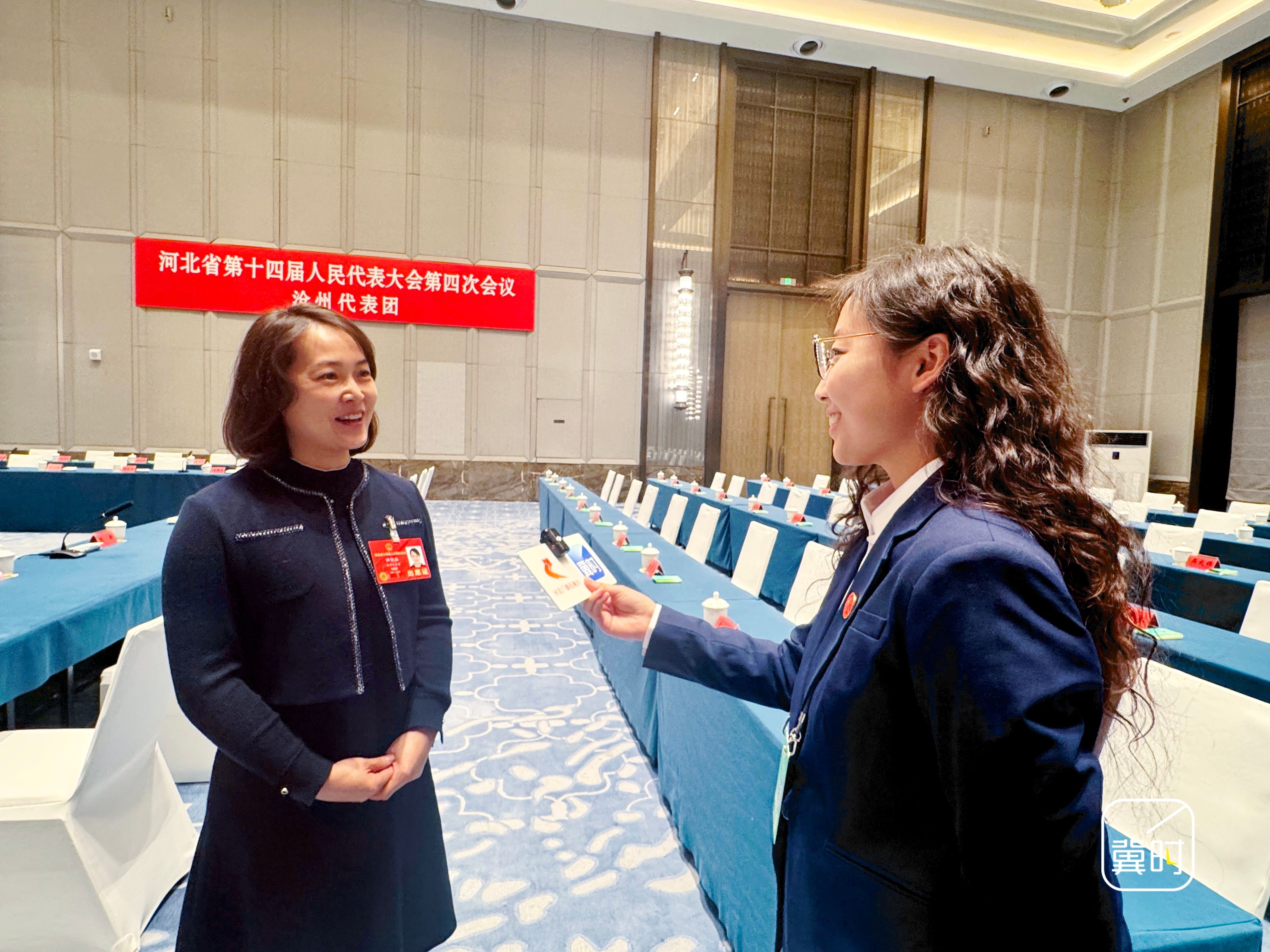 省人大代表回艳淑接受河北台记者李悦采访