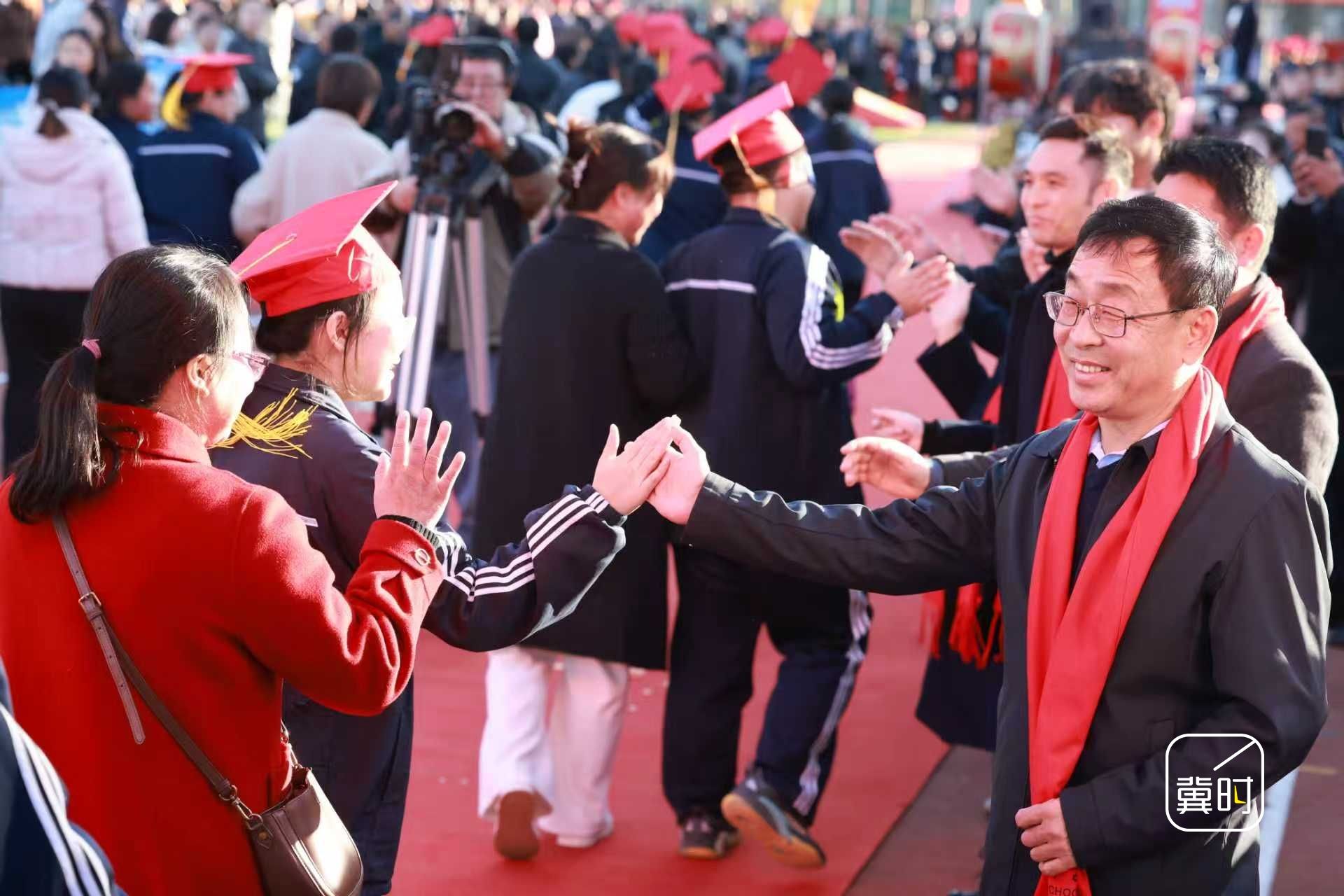 省人大代表李德升和同学们击掌加油