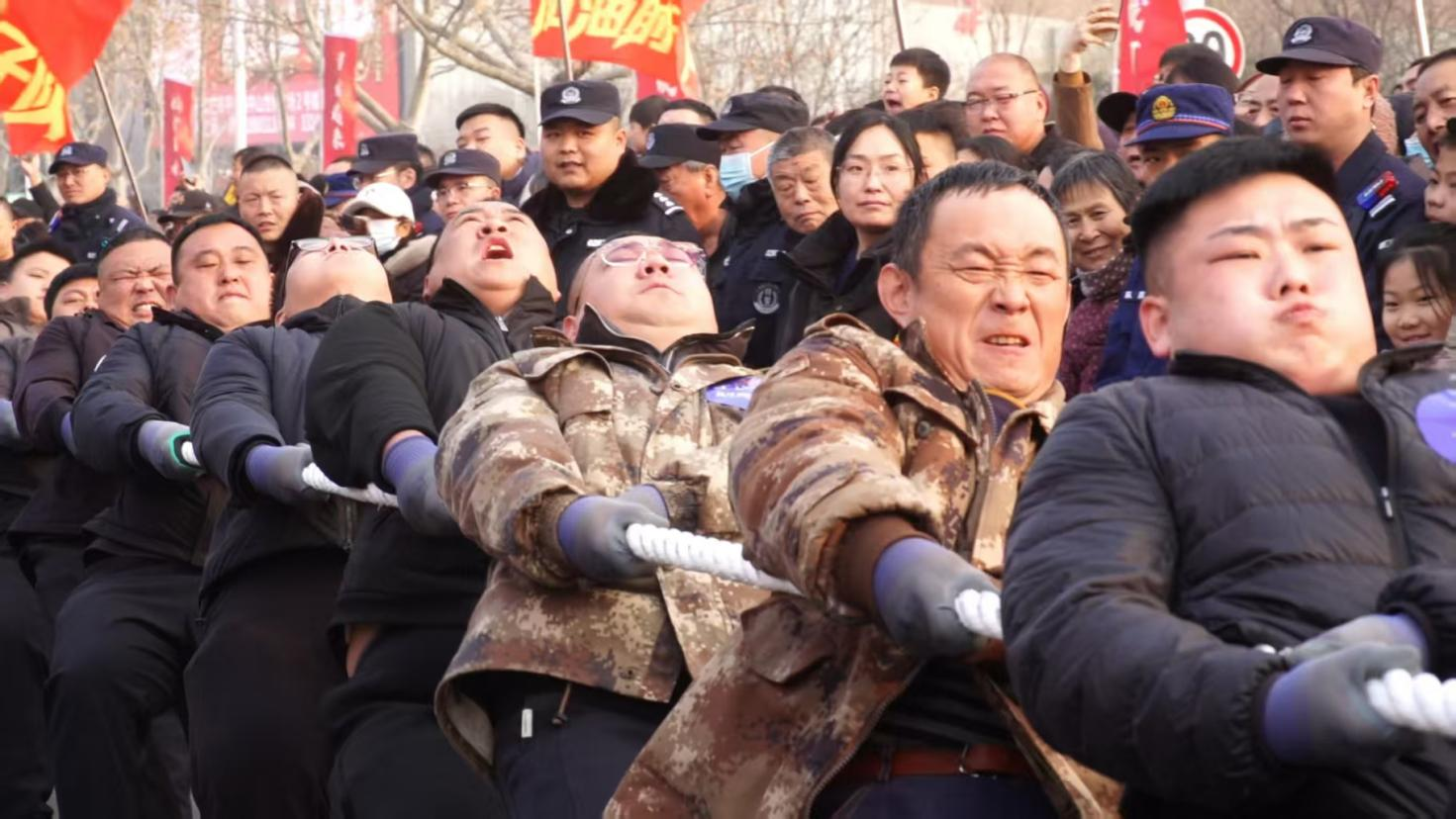 1月31日,太行东麓的平山县人民公园热闹非凡,两股热潮相映生辉、暖意涌动。一侧,“平山红”拔河超级联赛四强赛激战正酣,队员们紧握长绳、重心后倾,“团结起来,寸步不让”的呐喊震彻云霄,绳索上的红色标记在两队间反复拉锯,尽显“拧成一股绳”的拼搏韧劲;另一侧,新春年货节烟火气十足,炸年糕的焦香、手写春联的墨香与孩童追玩萌宠的笑声交织,勾勒出年味渐浓的热闹图景。