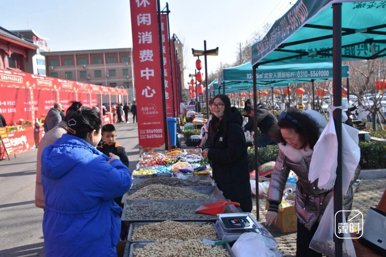 写春联、送福字等新春文创好物展销同步开展,搭配秧歌、变脸等民俗演出,全方位还原地道“武安年味儿”。商户白彦平售卖都是自家精心制作的武安特产。“一上午,武安特产粉疙瘩、红薯面饸络、纯手工粉条都卖了不少,收益得有2000多块。”此外,千余种全国知名年货精彩亮相,坚果礼盒、酒水粮油、家居百货等一应俱全,价格直降到底。