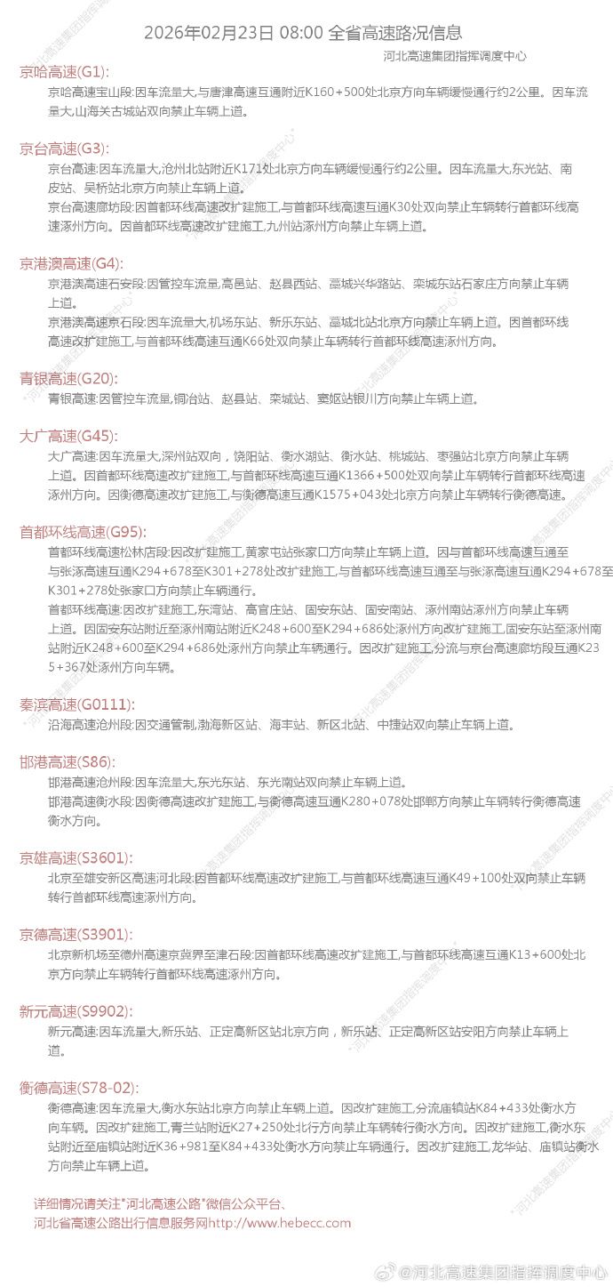 今天,河北多条高速迎来返程高峰,截至目前,省内多个高速站口临时关闭,详情如下:
