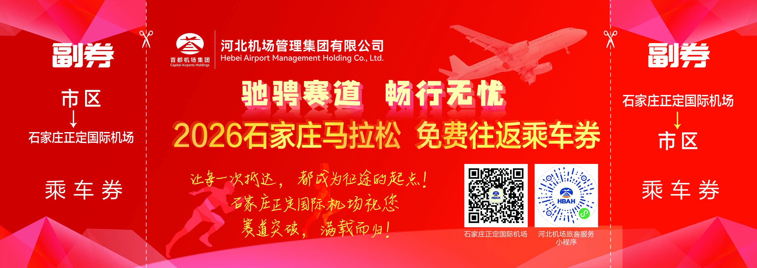 3月29日起全国民航将正式进入夏秋航季,河北机场集团同步发力优化航线网络与运力布局,通过加密重点城市航班班次、畅通干支中转通道,进一步提升省内干支互飞与省外通达能力。石家庄正定国际机场重点打造长三角、粤港澳大湾区、成渝城市群等方向“空中快线”,为各地参赛选手提供多元、灵活的出行选择。同时,为全力保障赛事出行、提升选手出行体验,石家庄机场特别推出机场往返市区免费旅客班车服务,参赛选手可凭赛事中签截图及本人身份证件,前往石家庄机场2号航站楼一楼“河北省石家庄市旅游服务中心”,或马拉松博览会现场河北机场集团展位领取乘车券。