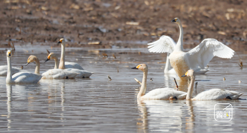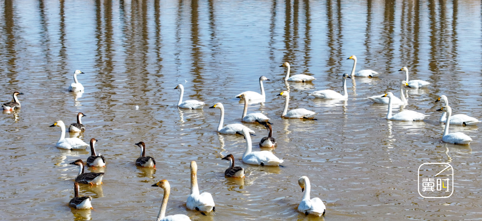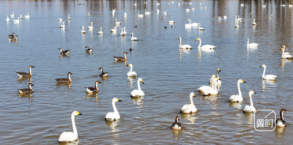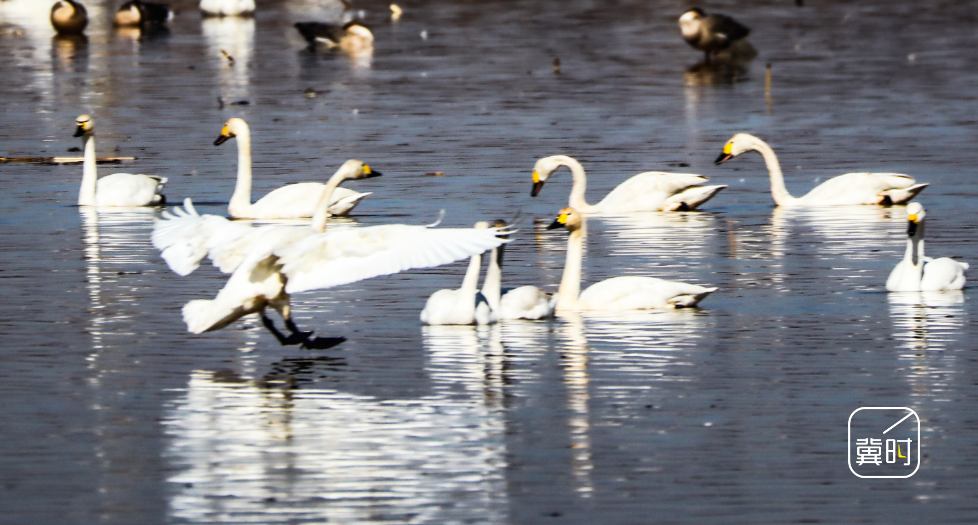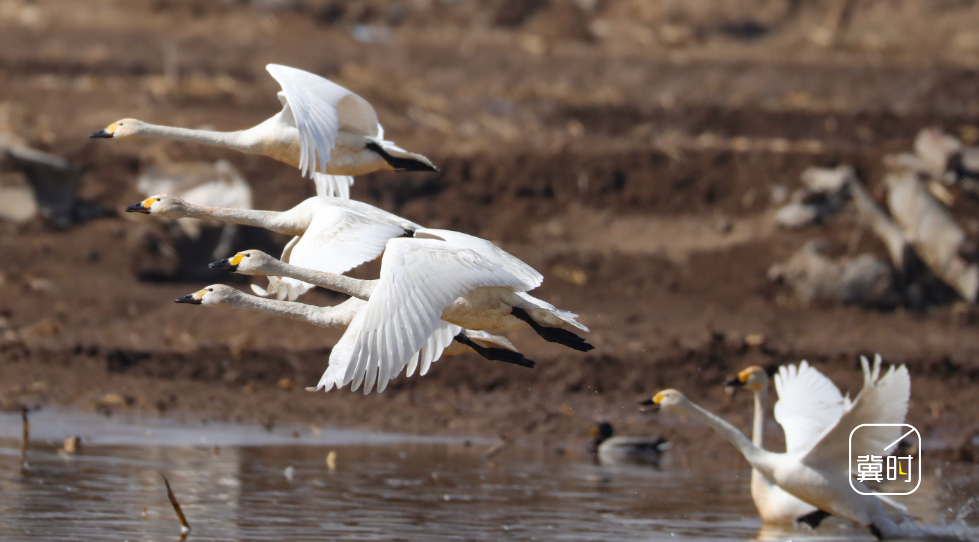 冀时新闻报道 连日来,张家口市怀安县左卫镇稻地房村冰雪消融,洋河水滋润而成的农田水塘里迎来成群天鹅、大雁、赤麻鸭等候鸟翔集。它们或水中悠然游弋,或凌空展翅飞舞,或结伴嬉戏觅食,为初春的原野增添了灵动生机。