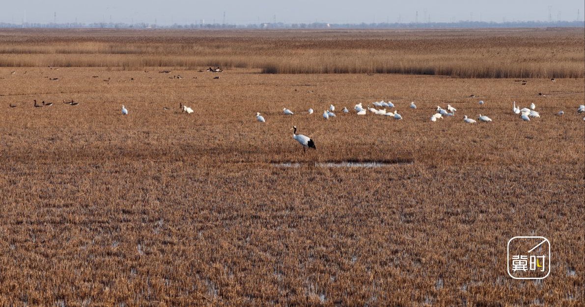在这一望无际的空旷芦苇地,丹顶鹤显得格外引人注目。它身披洁白如雪的羽毛,颈部与翼缘的黑色羽翼如同泼墨,纤细的双腿稳健地迈步于浅水中,最引人注目的莫过于头顶那一抹朱红,宛如点睛之笔,尽显仙风道骨。作为对环境变化极度敏感的“生态试金石”,丹顶鹤的再次回归无疑是南大港生态环境持续向好的有力证言。