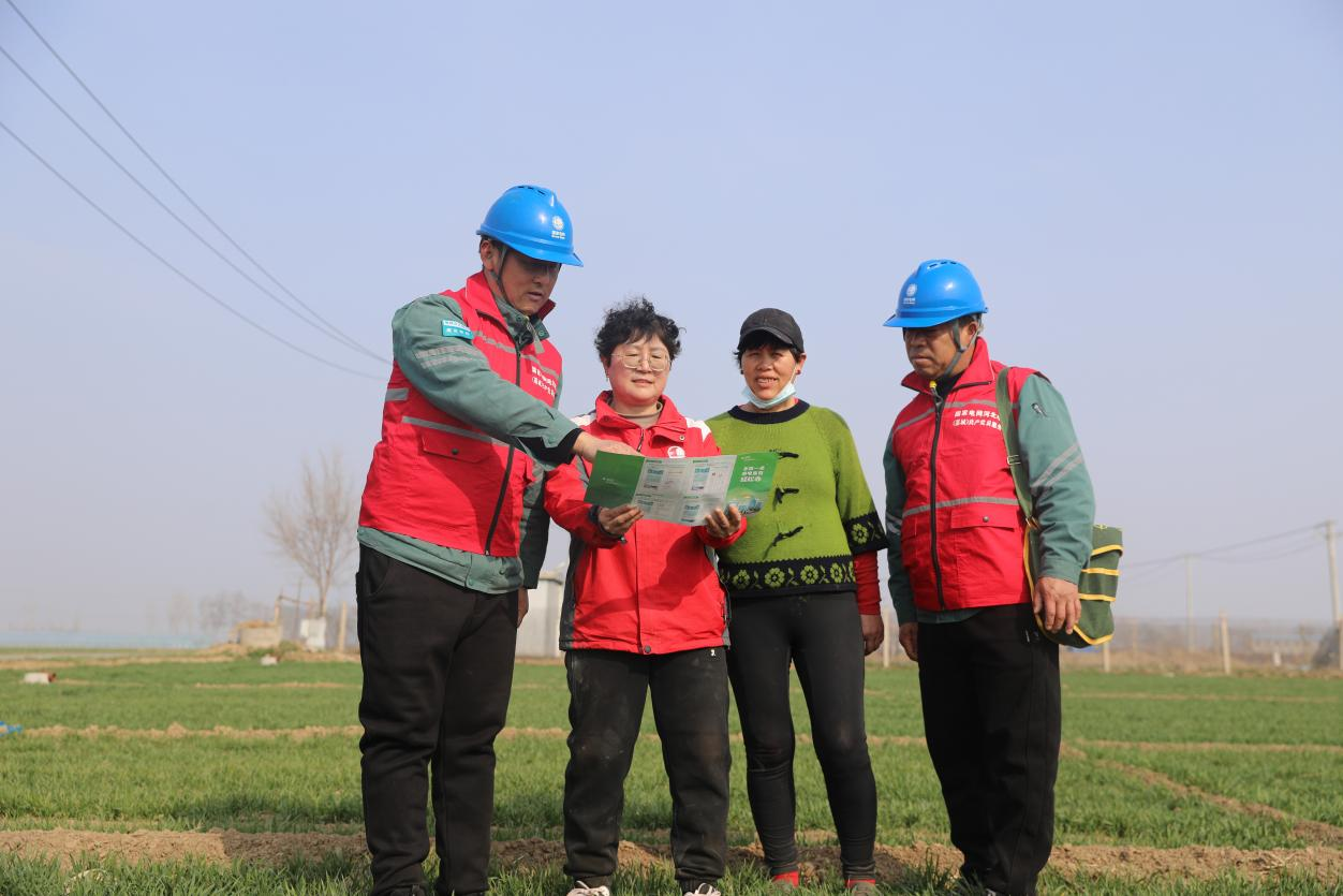 国网石家庄市藁城区供电公司工作人员向农户讲解春灌用电注意事项。赵亚龙 摄
