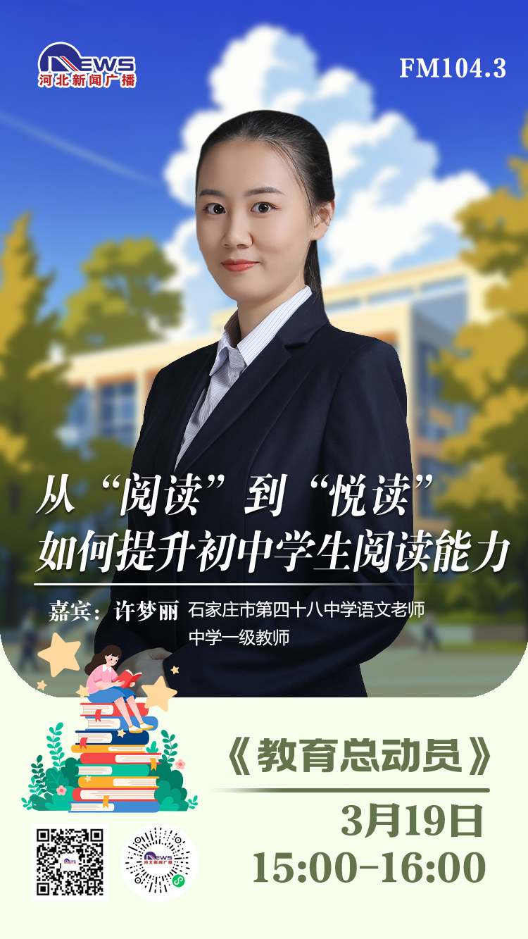 今天邀请石家庄市第四十八中学语文教师、中学一级教师许梦丽老师和大家聊聊如何提升初中阶段阅读能力。