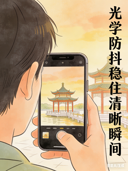 举个例子:用10倍长焦拍远处的亭子,取景框会跟着手抖来回晃。没有光学防抖的手机,拍出来的亭子大概率模糊、重影,而有防抖的手机,按下快门的瞬间镜头会快速调整抵消微小抖动,拍出来的亭子轮廓清晰,连细节都能看清。