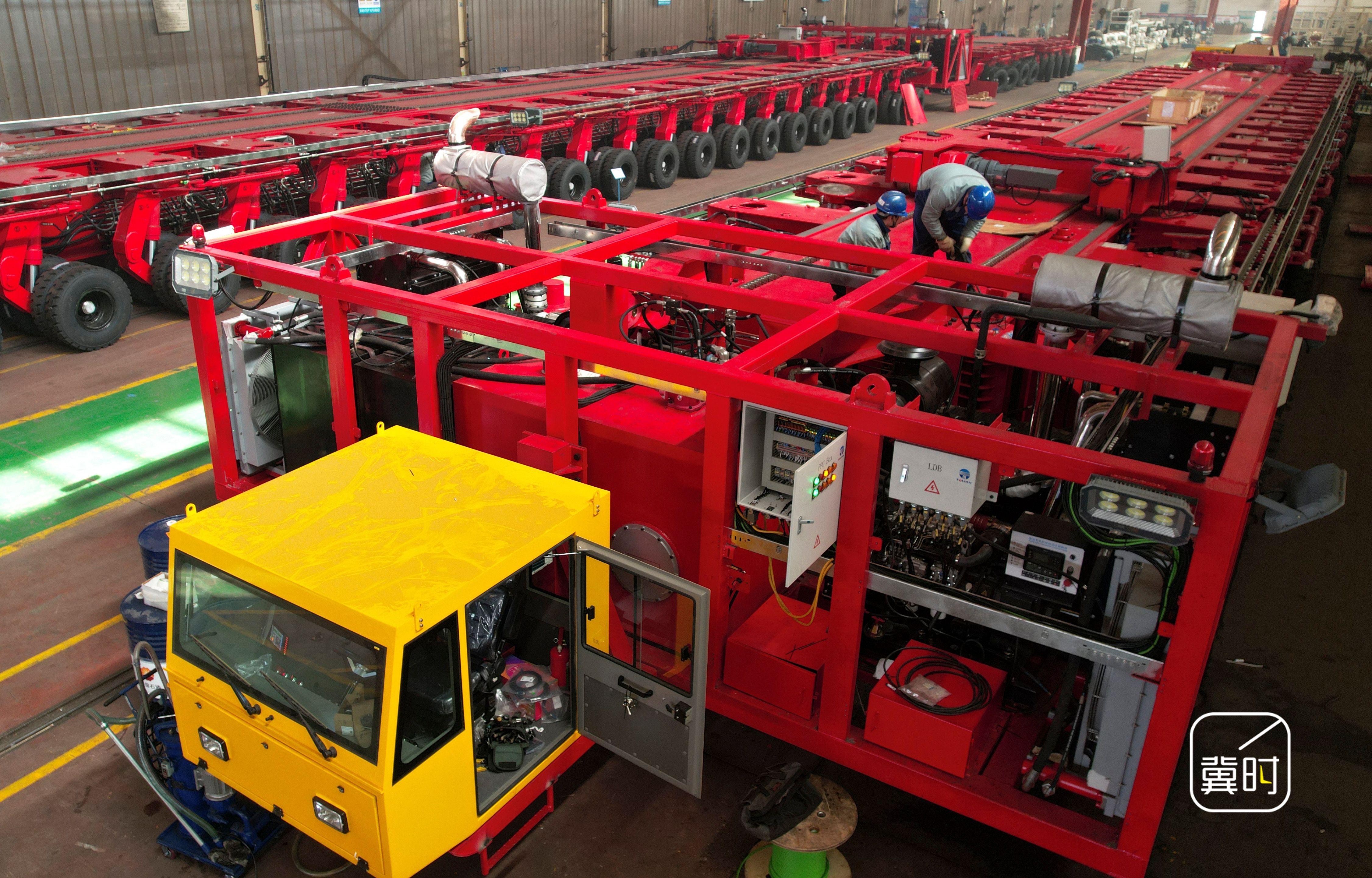 冀时新闻报道 3月25日,秦皇岛天业通联重工科技有限公司自主研发的1000吨级机电液一体化运梁车正式下线,完成出厂验收与调试,即将整装发往东南亚客户,服务当地高速铁路专线建设。
