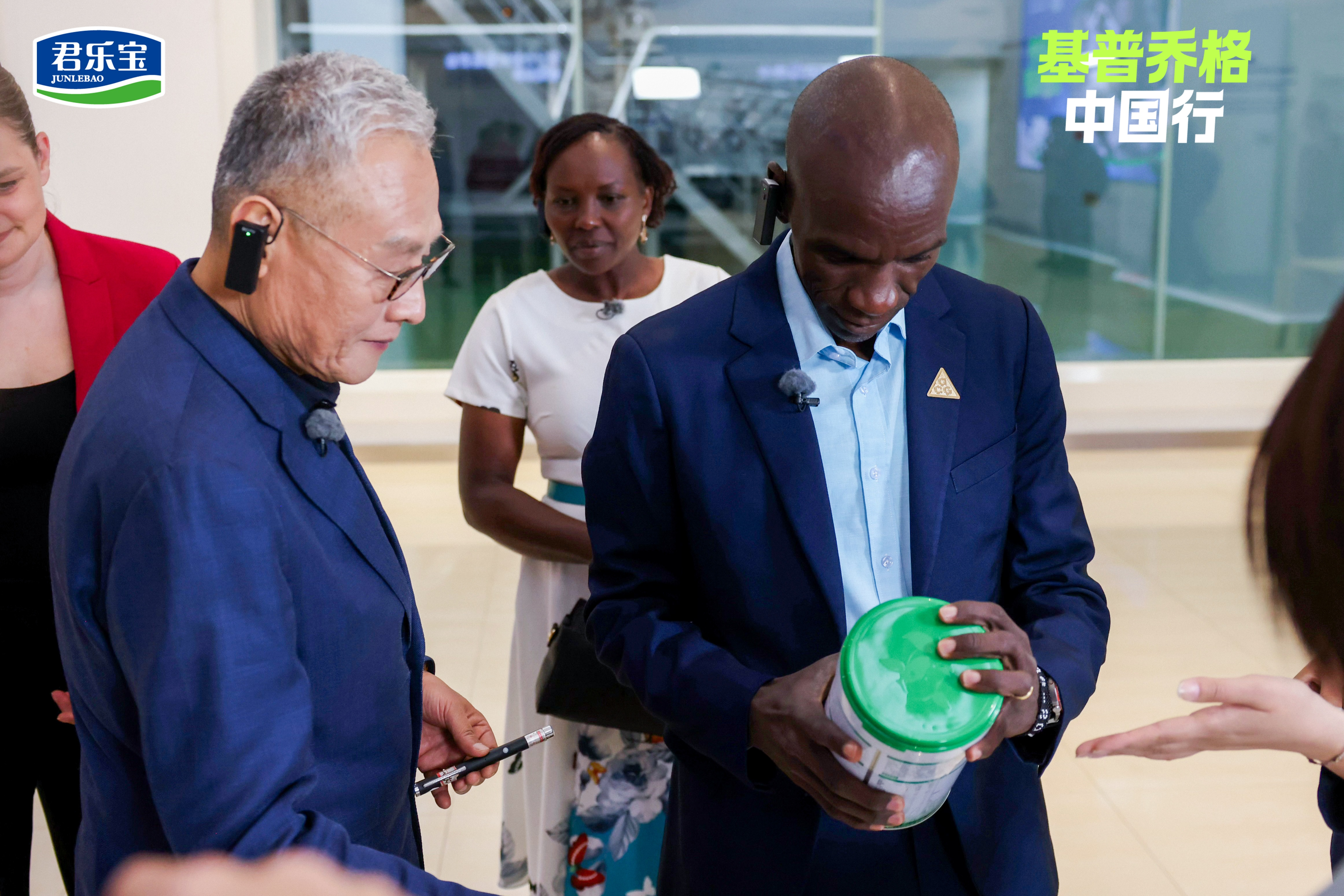 签约仪式上,君乐宝向基普乔格赠送了象征友谊与合作的第一罐定制奶粉。