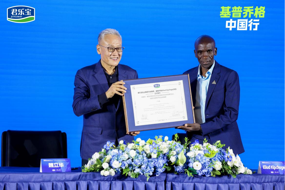 3月27日,全球“马拉松之神”埃鲁德·基普乔格走进君乐宝乳业集团,正式签约成为君乐宝全球品牌代言人,同时成为君乐宝奶粉肯尼亚市场战略合作伙伴。