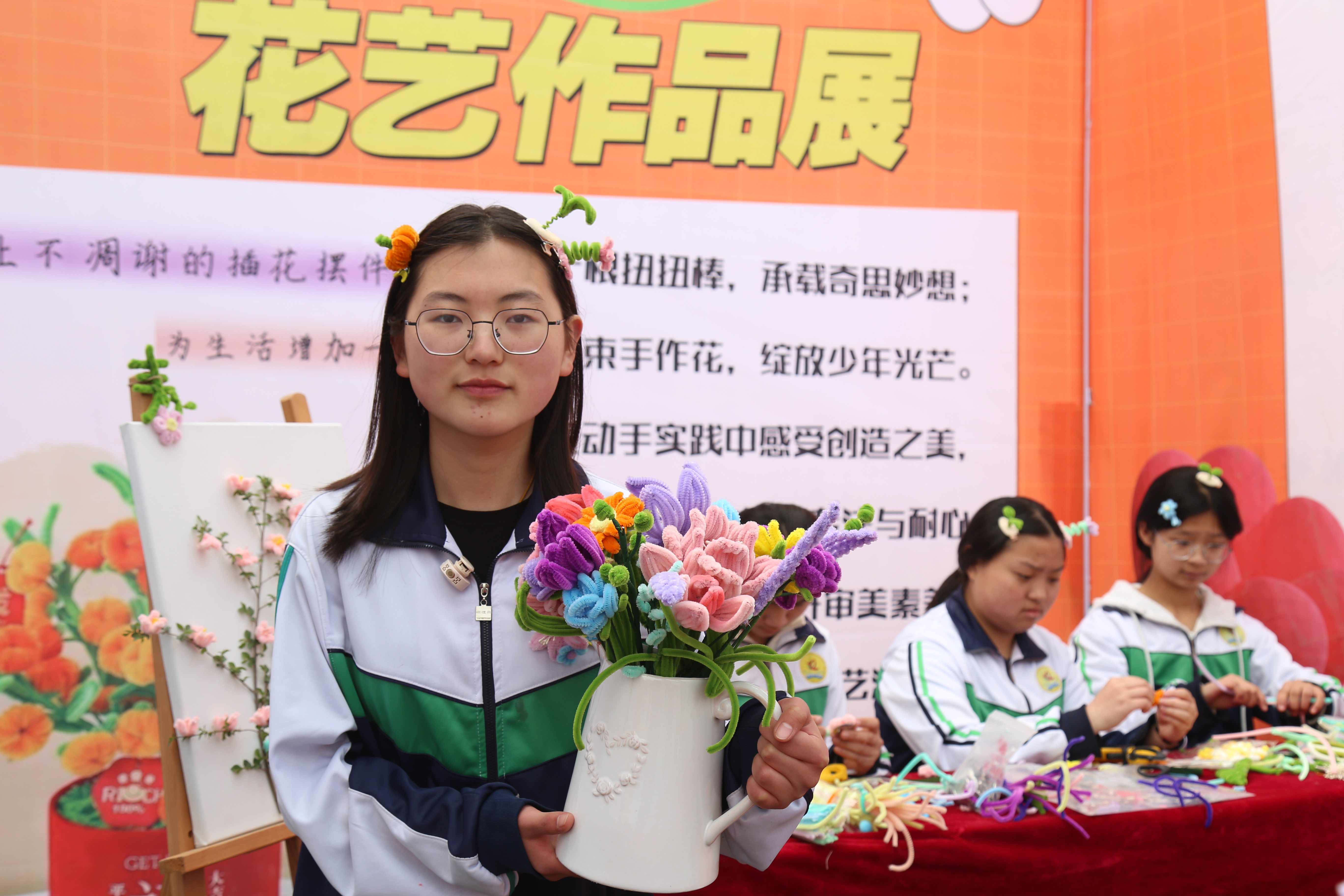 活动现场,各类劳动作品琳琅满目、创意十足,学生们同台竞技、各展所长,用巧手匠心呈现劳动之美。蒸花馍、制粮画、做水饺、烤蛋挞,烟火气十足的生活技能项目里,学生们在动手实践中掌握生活本领,体悟劳动的价值;黑陶、漂漆、蓝染、剪纸等非遗传承项目中,少年们以匠心守初心,让传统技艺在校园焕发新生;手工编织、植物拓印、变废为宝等创意作品,尽显青少年的奇思妙想与环保理念;机器人展示、新能源汽车实训等科创项目,彰显了新时代学生的创新活力与实践能力;农耕种植成果则让学生在躬耕田园中,厚植热爱劳动、珍惜粮食的朴素情怀。