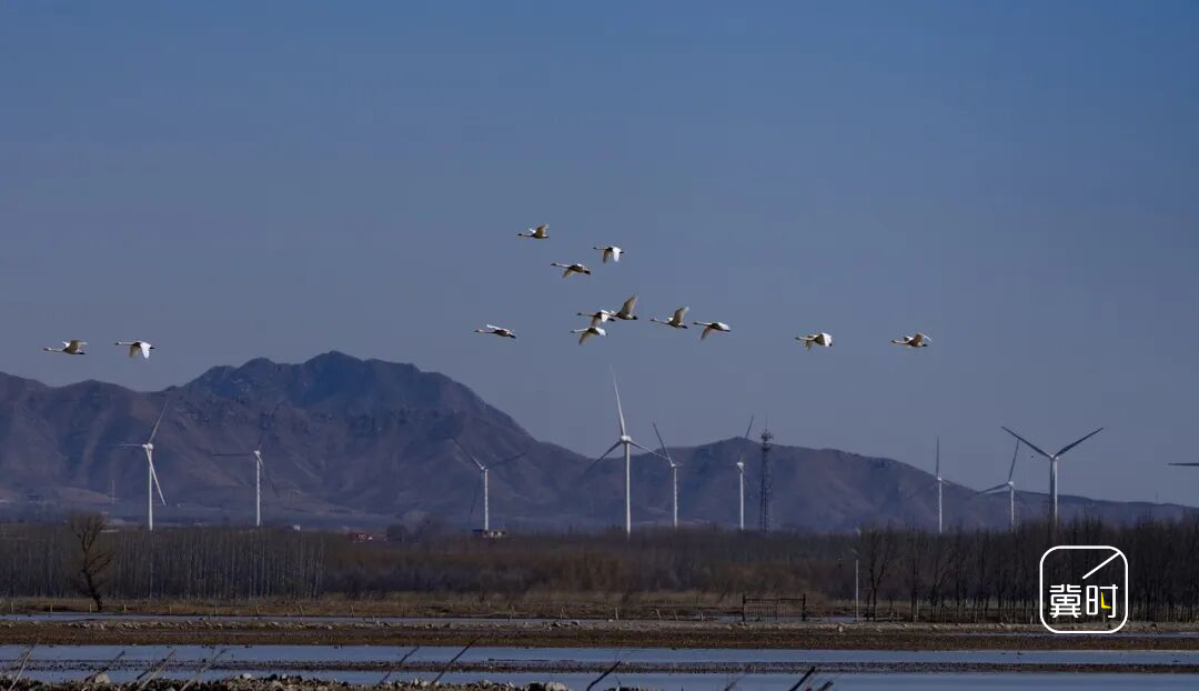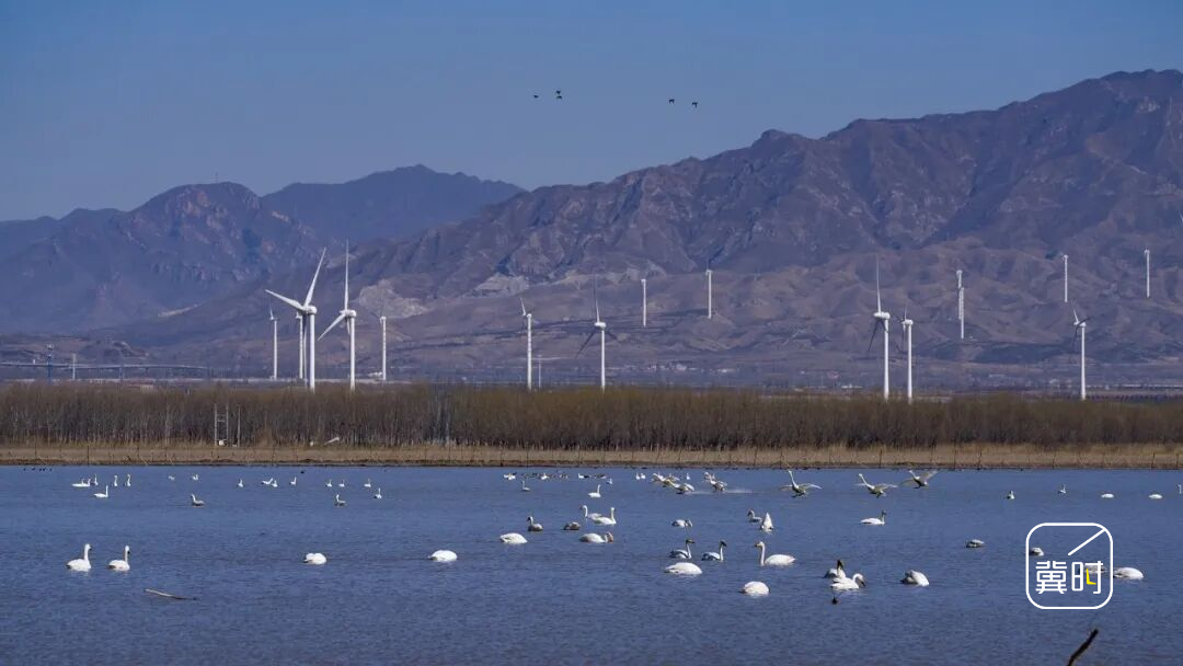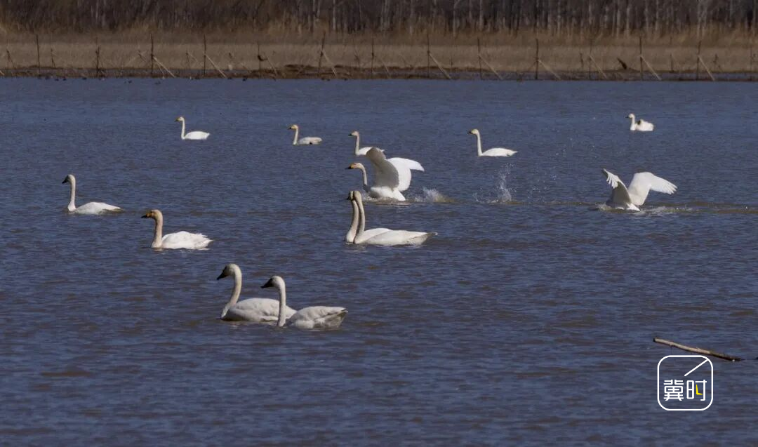 冀时新闻报道 初春时节,作为京津冀重要候鸟停歇地,张家口市怀来官厅水库国家湿地公园迎来了数百只迁徙的白天鹅,它们与一湖春水同框,或悠然游弋、低头觅食,或振翅滑翔、引吭高歌,构成一幅春日壮美的生态画卷。
