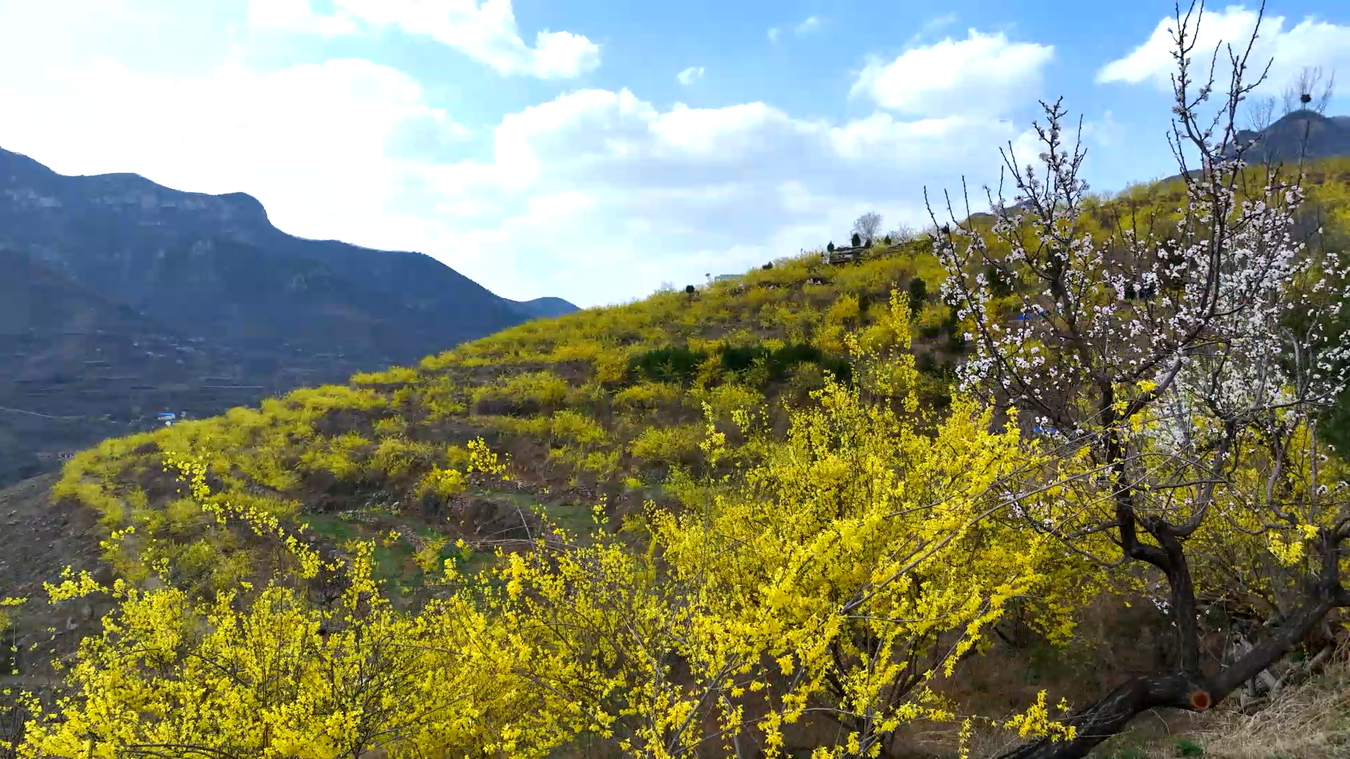 近日,邯郸涉县57万亩连翘迎来盛花期,金黄色的连翘花沿山势绵延铺开,勾勒出绚烂的春日画卷,吸引不少游客和村民前来踏青赏花。