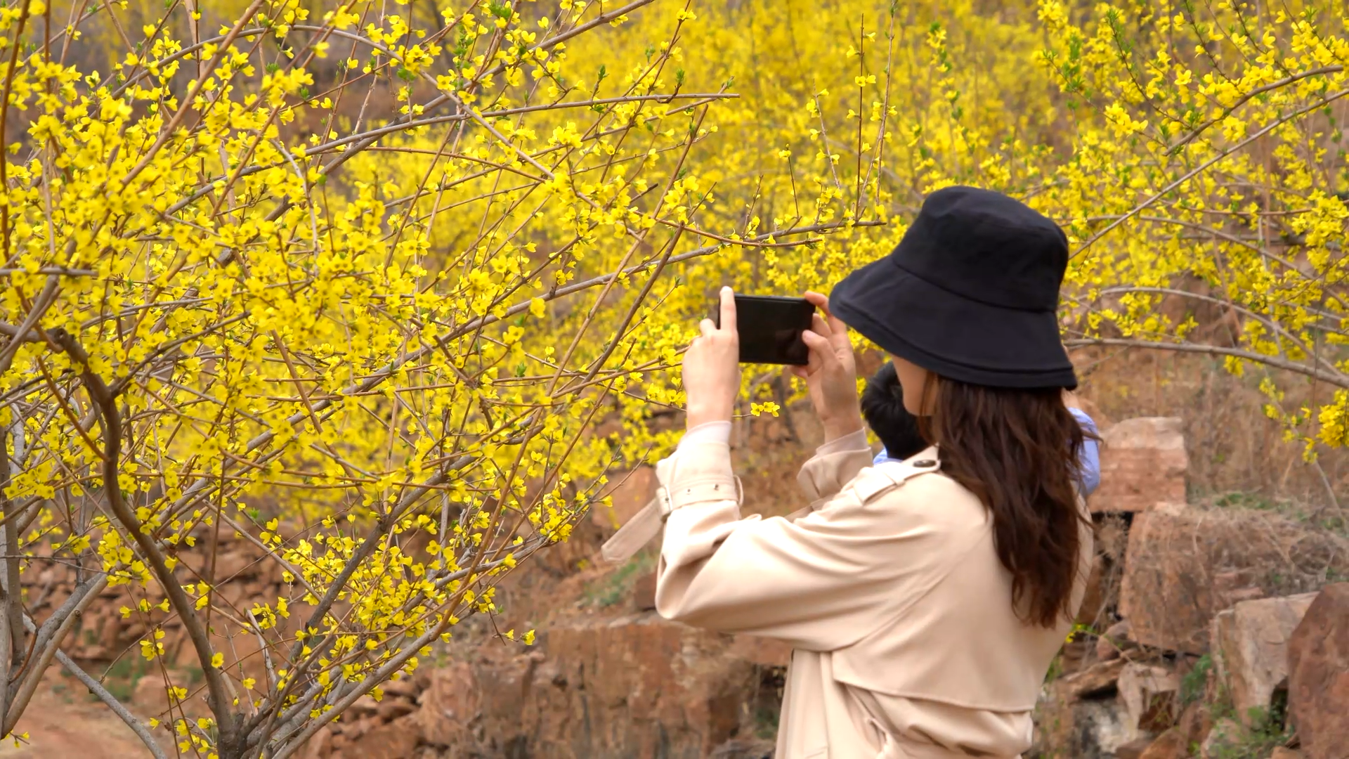 在辽城乡北脑家庭农场连翘种植基地,一簇簇、一丛丛连翘花竞相绽放,将乡间山峦装扮成金色的海洋。微风轻拂,花香四溢,游人漫步花海,赏花拍照,尽享春日美好。“一直听说辽城乡北脑农场有一片连翘花海,今天正好没事儿和朋友一起过来看看,漫山遍野全是金黄色的花,特别震撼,春天没事儿来这踏踏青,特别治愈。”游客冯利强说。从河南专程赶来的游客苏哲也感叹道:“在手机上刷到别人拍的连翘花非常美,就和朋友约着一起来这打卡。来到这以后,发现这特别出片,怎么拍都很好看的,风一吹还有淡淡的花香,在这里心情都变好了。”