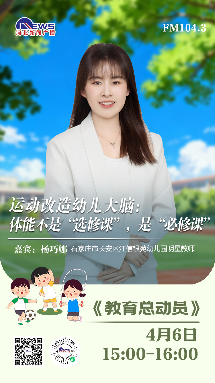 杨巧娜:很多家长忽视体能教育,是普遍存在的认知误区,也是我们在日常家园沟通中最常遇到、最需要耐心引导和科普的观念问题。很多家长把“健康”简单等同于“不生病”“吃得胖”“长得高”,把体能活动等同于“单纯的玩耍”“消耗精力”,甚至把运动和“受伤风险”直接画上等号,从而不自觉地弱化、甚至排斥孩子在幼儿园和家庭中的体能锻炼。在我们幼儿园看来呢,幼儿阶段的体能教育,绝不仅仅是让孩子简单地跑一跑、跳一跳、玩一玩器械,它主要体现在身体发展、大脑发育、心理塑造、社会性培养四个关键层面。