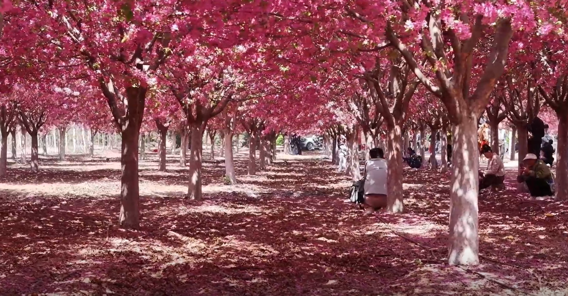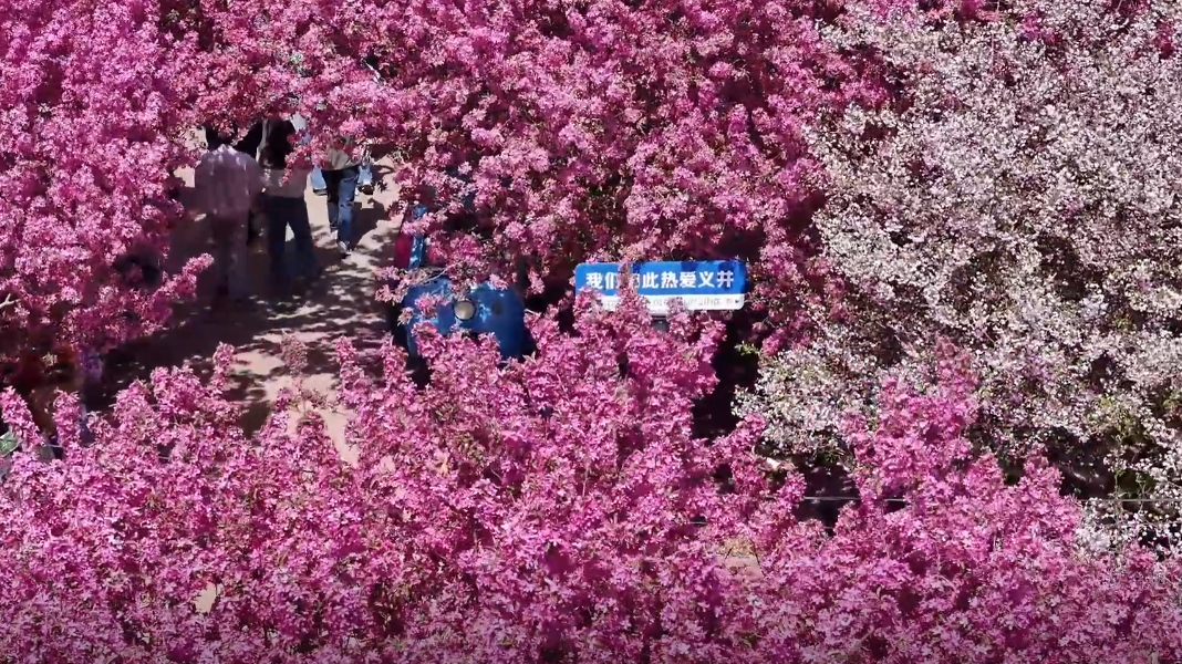 走进峰峰矿区万亩秀林,6000余株海棠竞相绽放,西府、垂丝、贴梗等20余个品种的海棠花,色彩各异,或红艳如晚霞,或洁白如朝雪。从高空俯瞰,整齐排列的花树宛如五彩棋盘。游客晓婉说:“今天我跟朋友们一块儿,从邯郸开了一个多小时的车,专门来打卡义井镇的万亩秀林。这儿特别美,拍照特别出片,活动也非常有趣,体验感非常好。”游客李大卫告诉记者:“在这里可以欣赏到漂亮的海棠花、吃到当地美食,还能买到当地土特产,收获满满。”