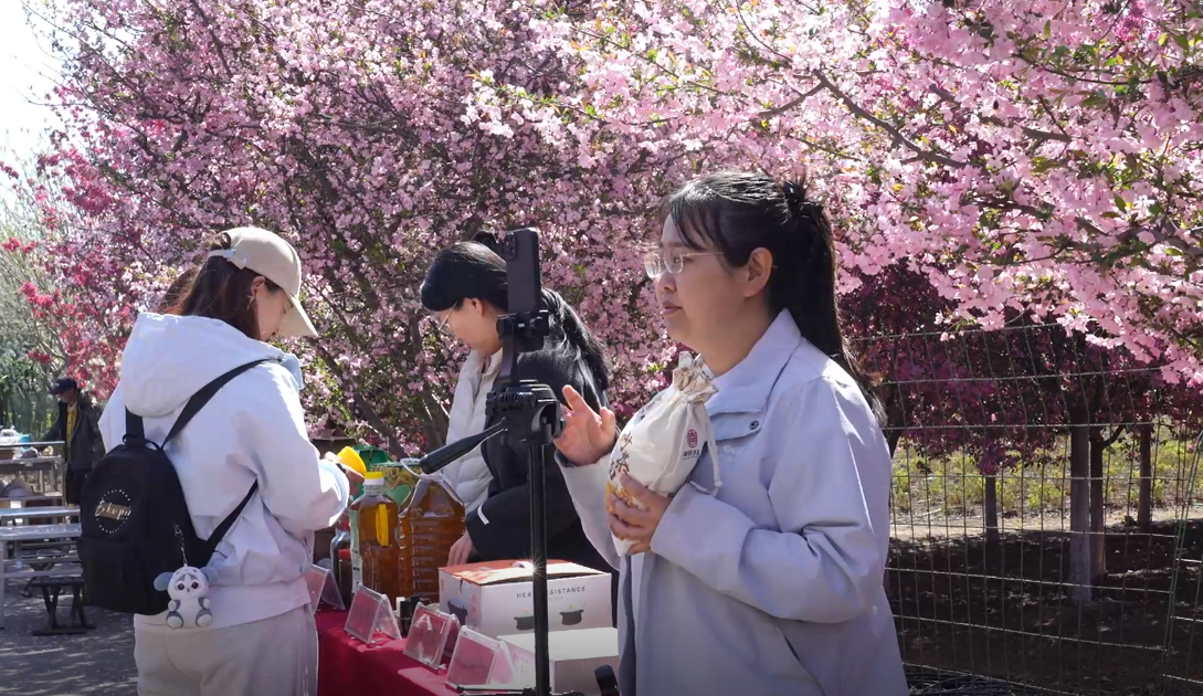 值得一提的是,当地将“一品一播”融入花海盛景,让春日美好从线下走向云端。园区内设置的“一品一播”直播专区里,专业设备实时直播海棠盛景、农特产品展销等活动,不仅让全国网友在云端共赏峰峰春日美景,更借助万亩秀林的特色内容为直播账号引流涨粉,让峰峰海棠的美名远扬。峰峰矿区义井镇主播刘玉清说:“以前我在外面打零工,后来义井镇开展了‘一品一播’的主播培训活动,我也积极报名参加了。现在成了镇上一名本土主播。一边播美丽的海棠花,一边展示义井镇的农特产品。一天下来,也接到了不少订单。”