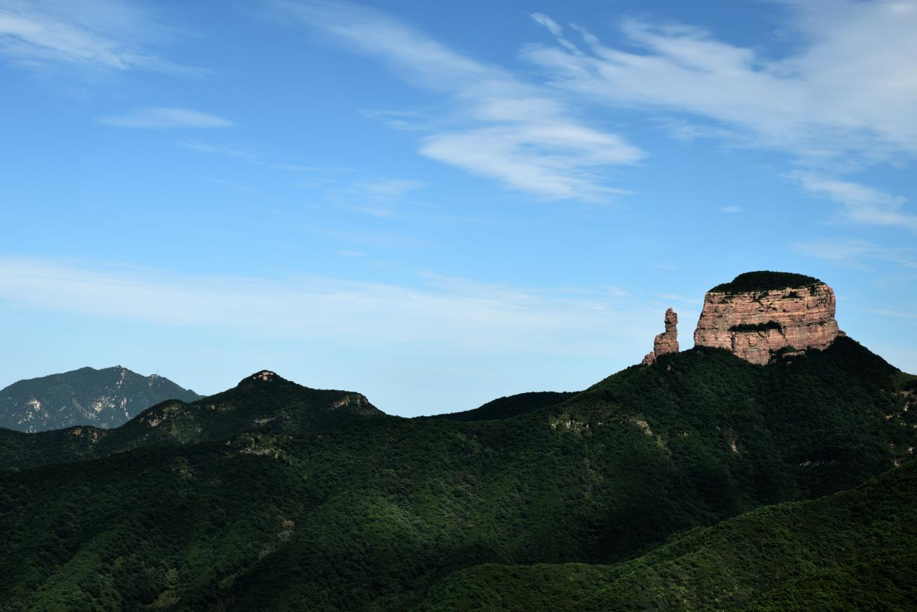 这块地球的“红色千层糕”,学名叫做“长城系砂岩”。这种以红色石英砂岩为主体的地貌,被称为“嶂石岩地貌”,它和广东丹霞地貌、湖南张家界地貌并称为“中国三大砂岩地貌”。