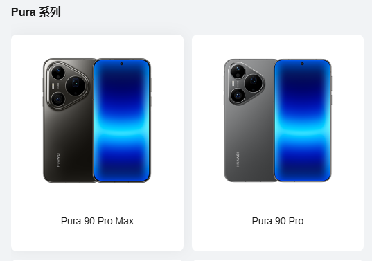 Pura 90 系列将带来三款机型,分别是Pura 90标准版、Pro 版、Pro Max 版。目前,Pura 90 Pro 和ProMax 已经上架华为商城。