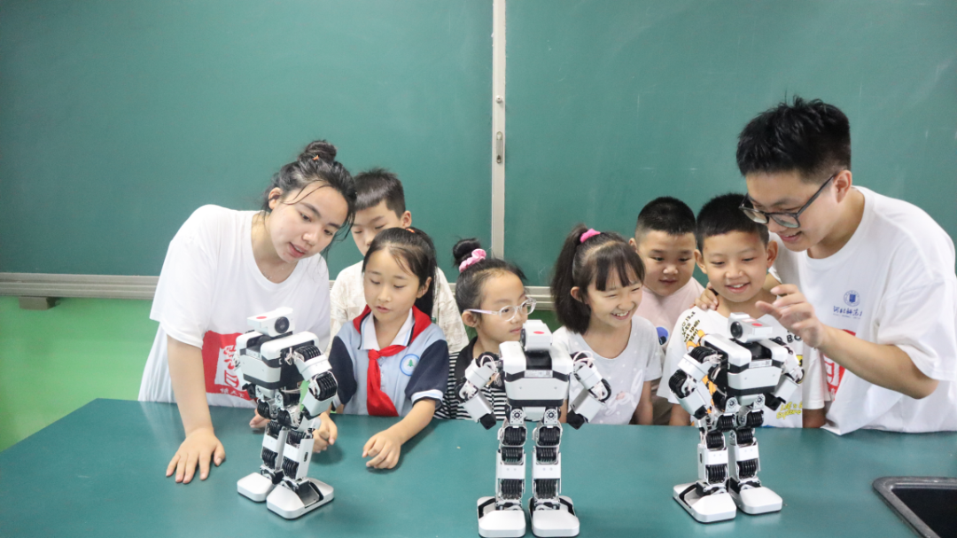 我市还积极鼓励社会各界热心人士参与到小学生免费托管服务中,以他们的专业所长为孩子们暑期生活带来不同的视角。在新华区大安舍学校,河北师范大学职业技术学院、中燃工学院“益”心向善暑期社会实践队的10名大学生加入了该校的托管服务。他们根据自己所学的专业,为孩子们开设了机器人展示课程,让他们与机器人进行人机对话,激发他们科学探索的热情。社区志愿者、退休教职工、文体工作者、民间艺人、能工巧匠、非物质文化遗产传承人等热心人士纷纷加入到我市小学生暑期免费托管服务中,为孩子们的暑期托管生活带来丰富的色彩。