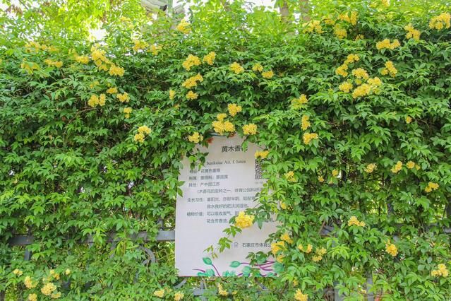 目前,石家庄市体育公园种植的木香花已在盛花期,花开似海,宛若花瀑,引得游客驻足拍照、赏花闻香,成为该园一个独特的景观打卡地。体育公园办公区墙外,共计种植木香花100余棵,有黄色和白色两个品种。黄色艳丽淡香、白色清雅浓香,黄者若锦,白者如雪。盛花期在4月中下旬,持续半个月。地址位于体育公园街与祥泰路交口,东南方向。