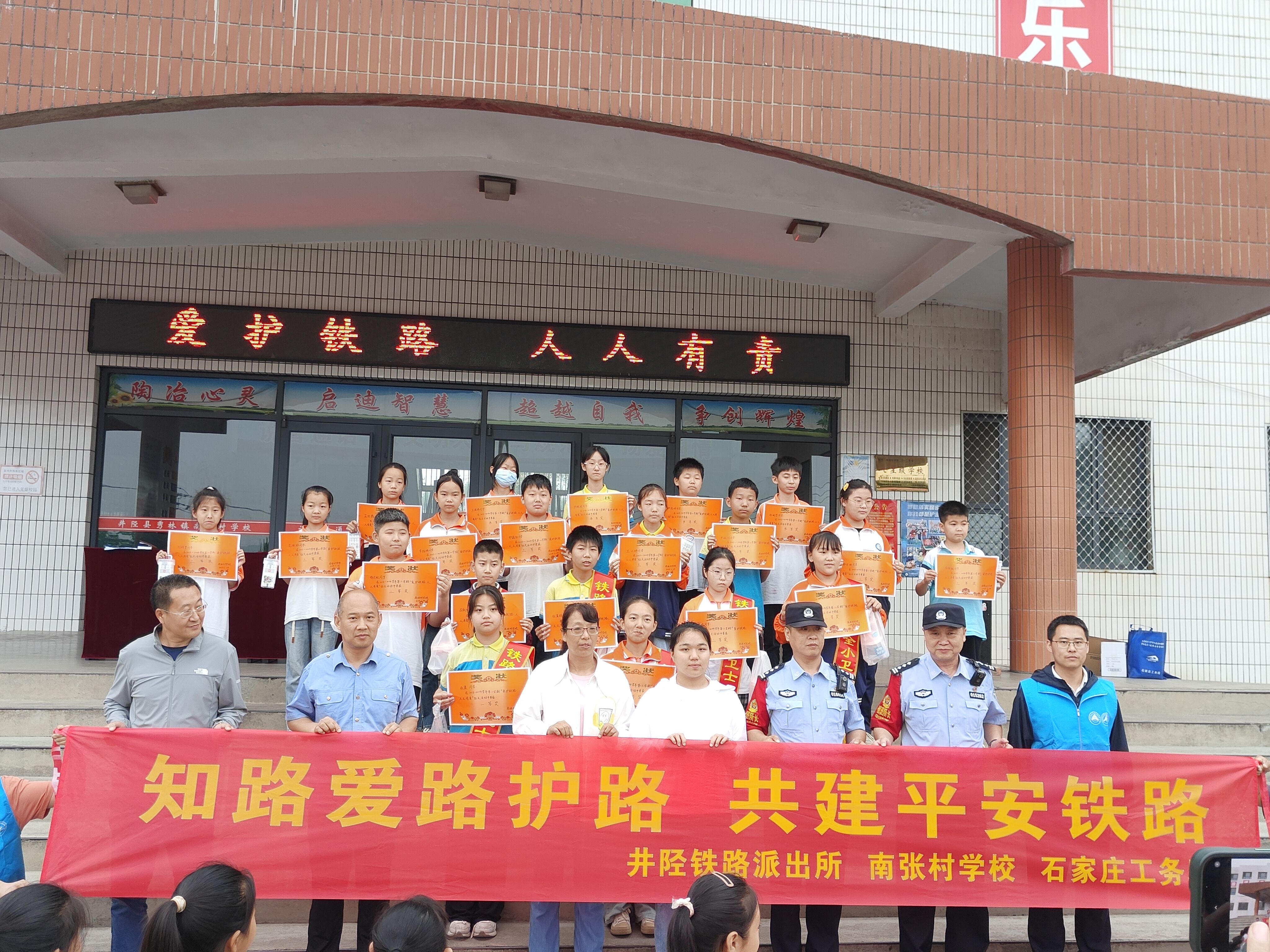 近日,中国铁路北京局集团有限公司石家庄工务段与石家庄铁路公安处井陉车站派出所联合在井陉县南张村学校举办“5.26”爱路护路宣传活动。活动旨在普及铁路安全知识,强化学生爱路护路意识。