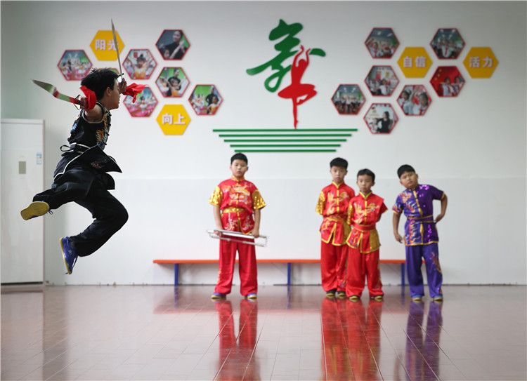 11月22日,河北省霸州市胜芳镇红光小学的学生在练习武术。